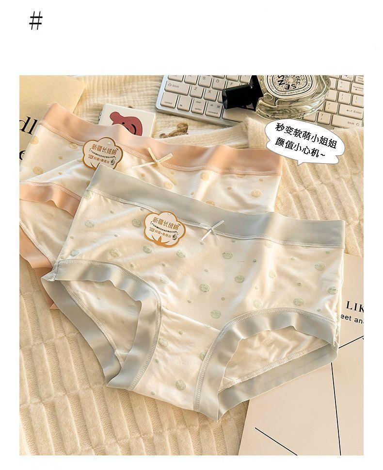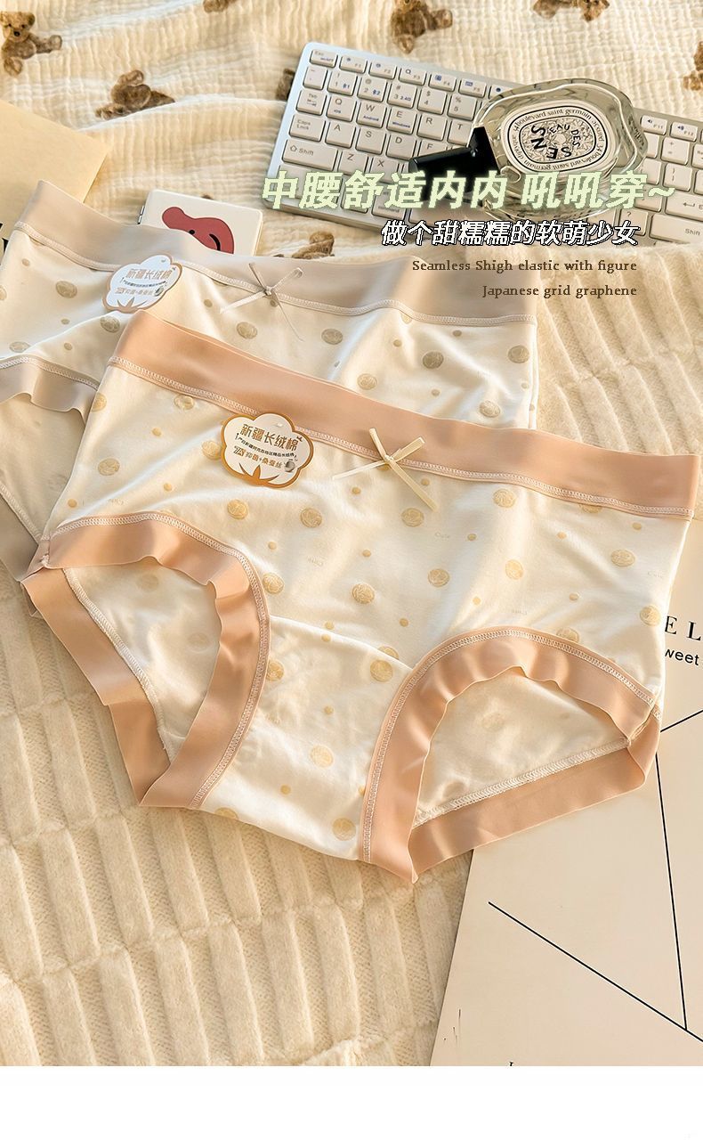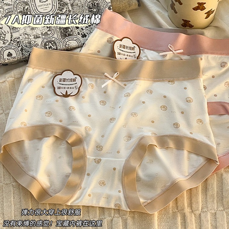 7A抑菌新款甜美内裤加长底档中腰舒适柔软亲肤纯棉底档少女三角裤