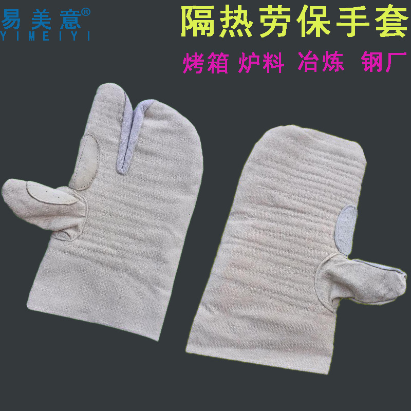 易美意羊皮電気溶接手袋防熱労働保護皮溶接工帆布延長溶接半皮革作業手袋