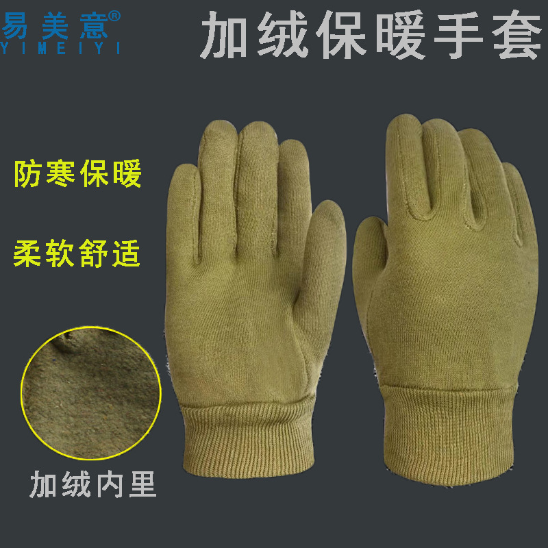 軍緑労働保護ベルベット手袋防寒保温低温ベルベットグリーンブルー自転車工場でゴム手袋を運ぶ