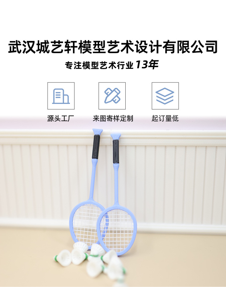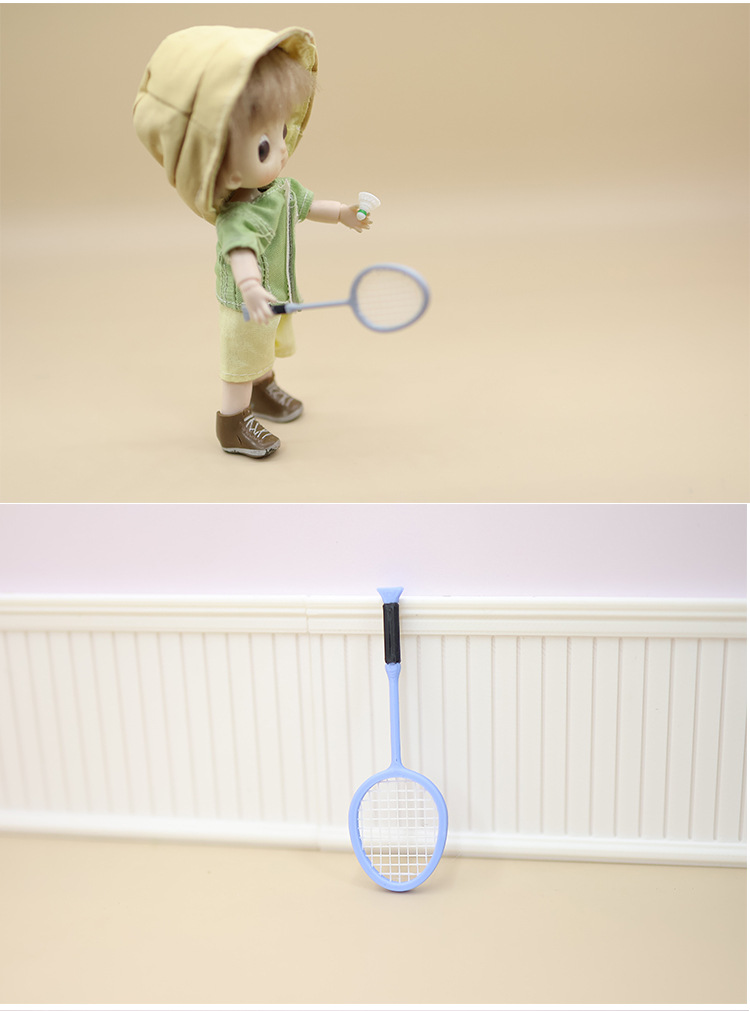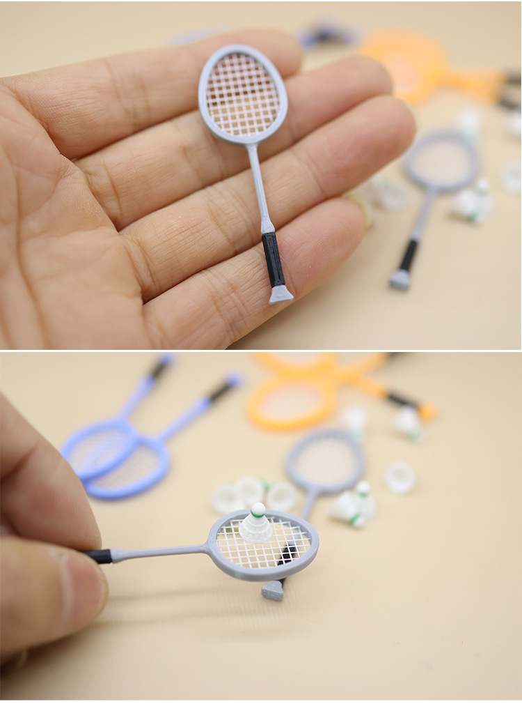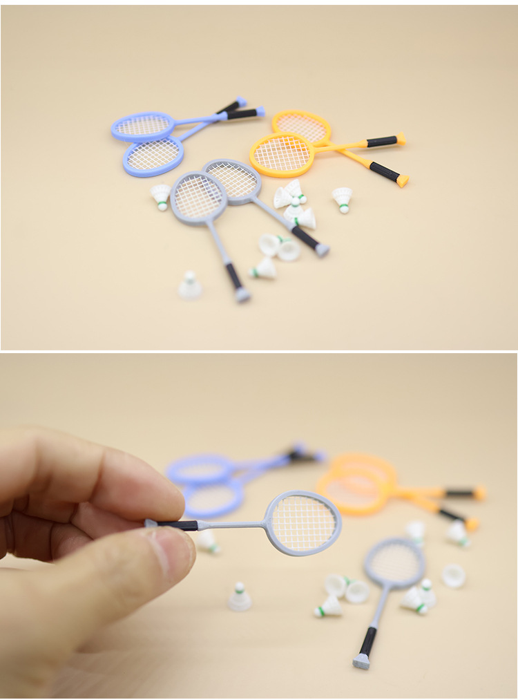 迷你袖珍羽毛球球拍模型娃娃屋迷你运动品微缩羽毛球拍过家家玩具