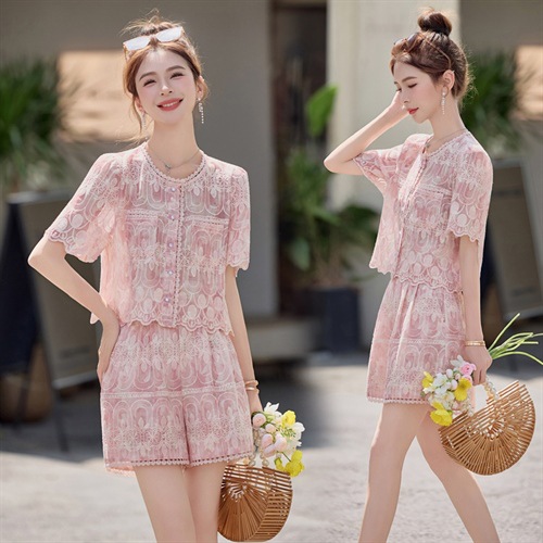 2025 夏の新ファッションレースラウンドネック半袖ショーツスーツ 2 点セット