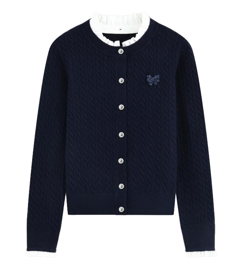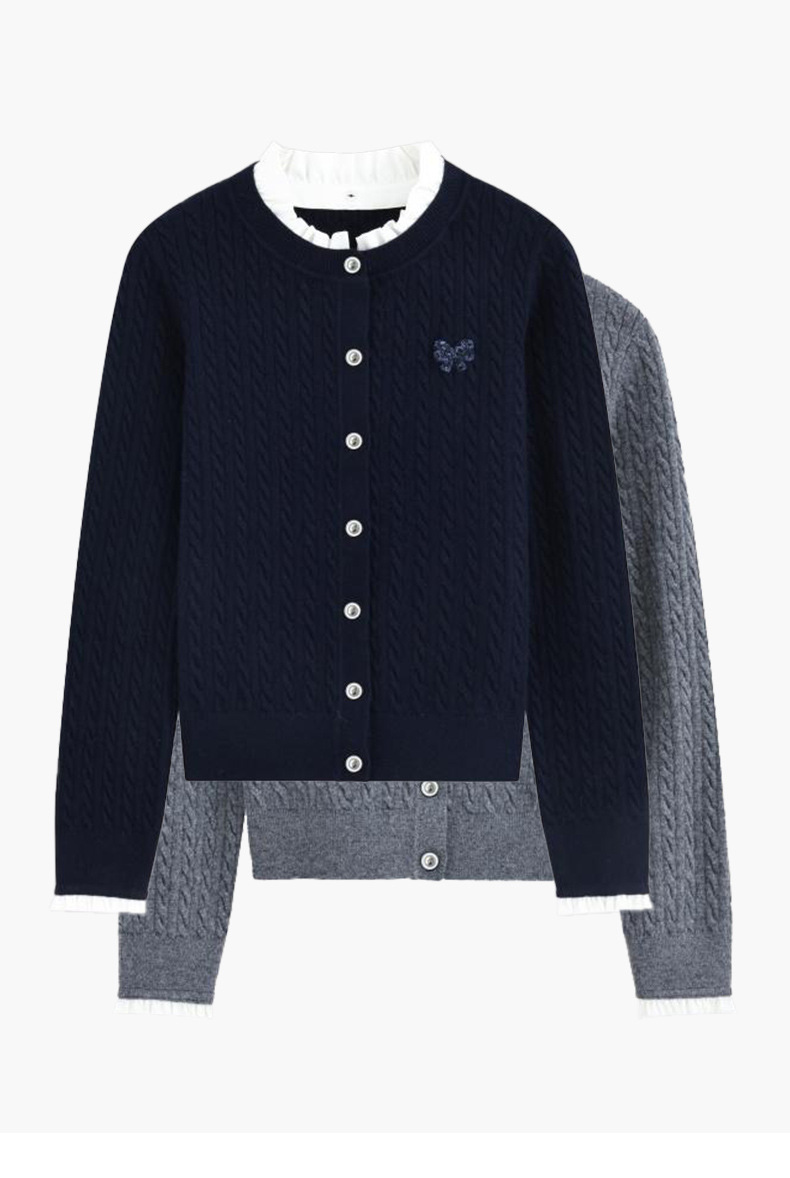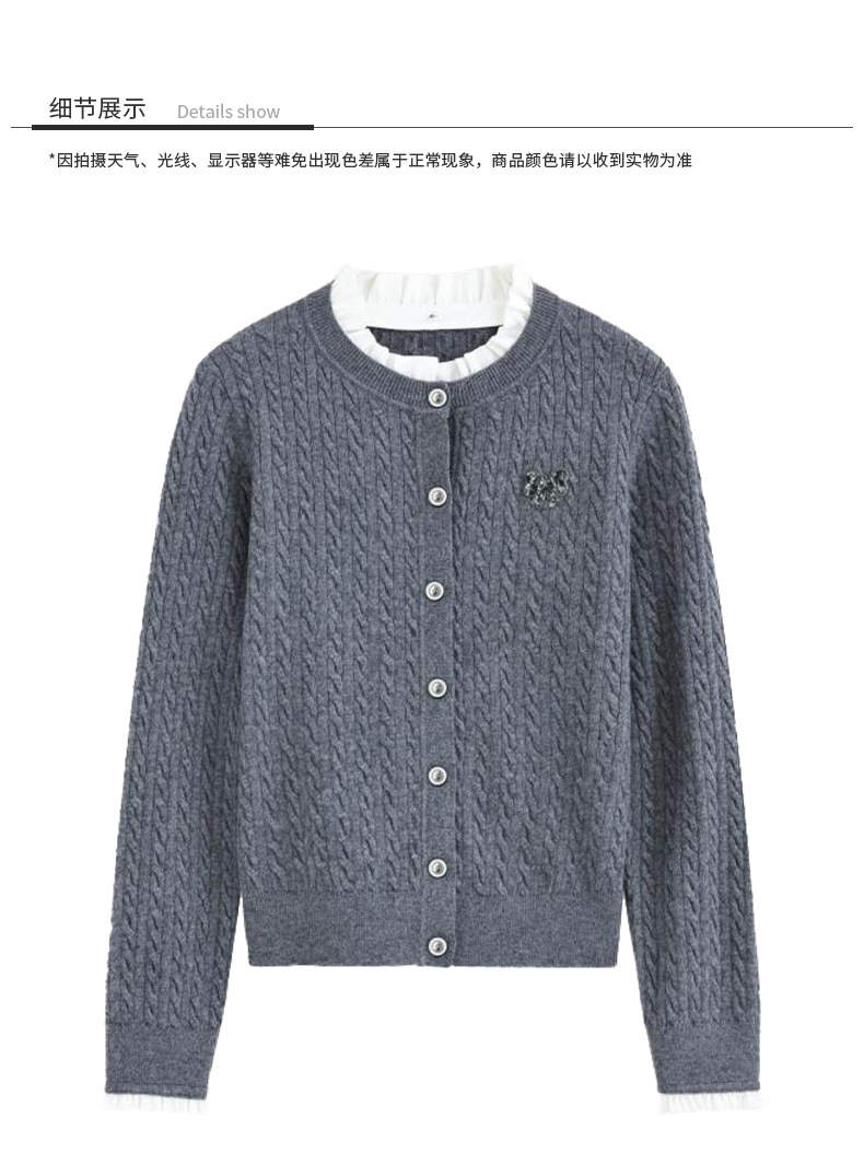 デザイン感のある蝶結びのニットの女性の早春の新型2025年の小柄な気質はやせてゆったりとしたカジュアルな上着を見せます。