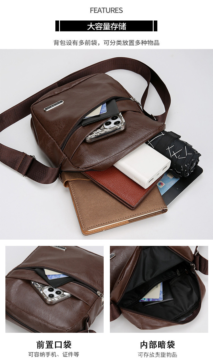 时尚PU软皮质感通勤男包简约休闲百搭单肩包大容量商务出行斜挎包