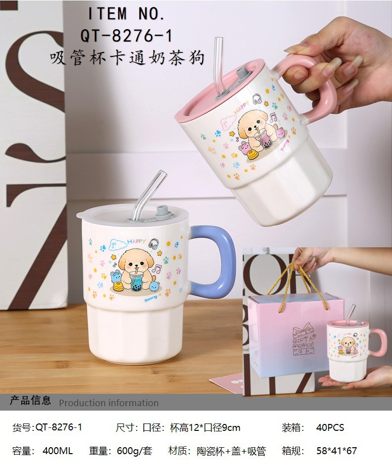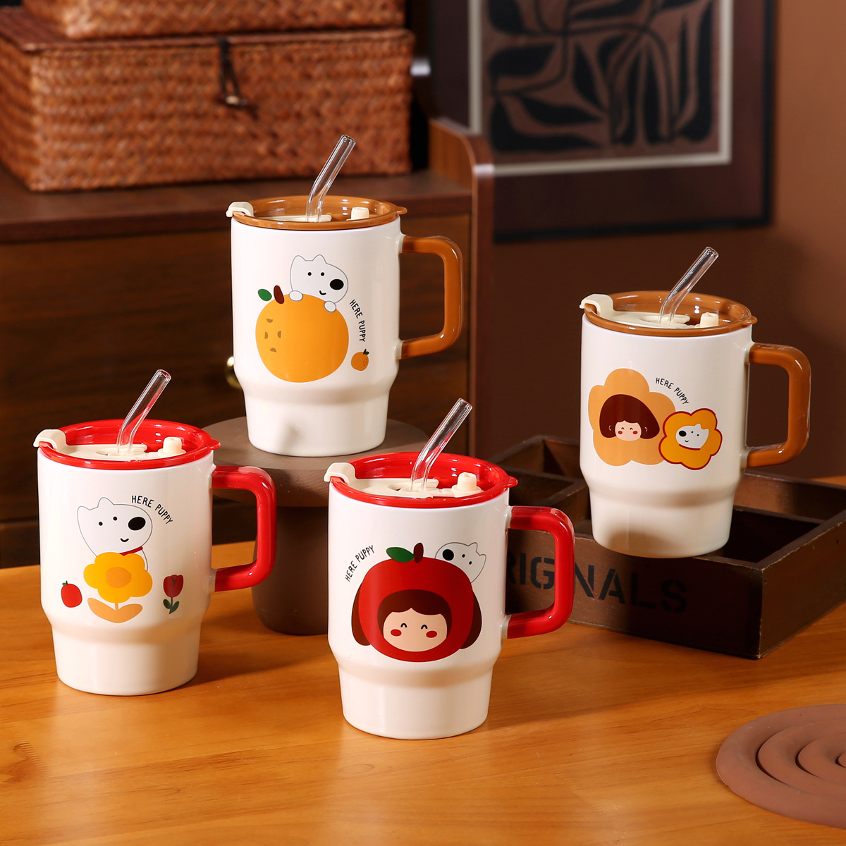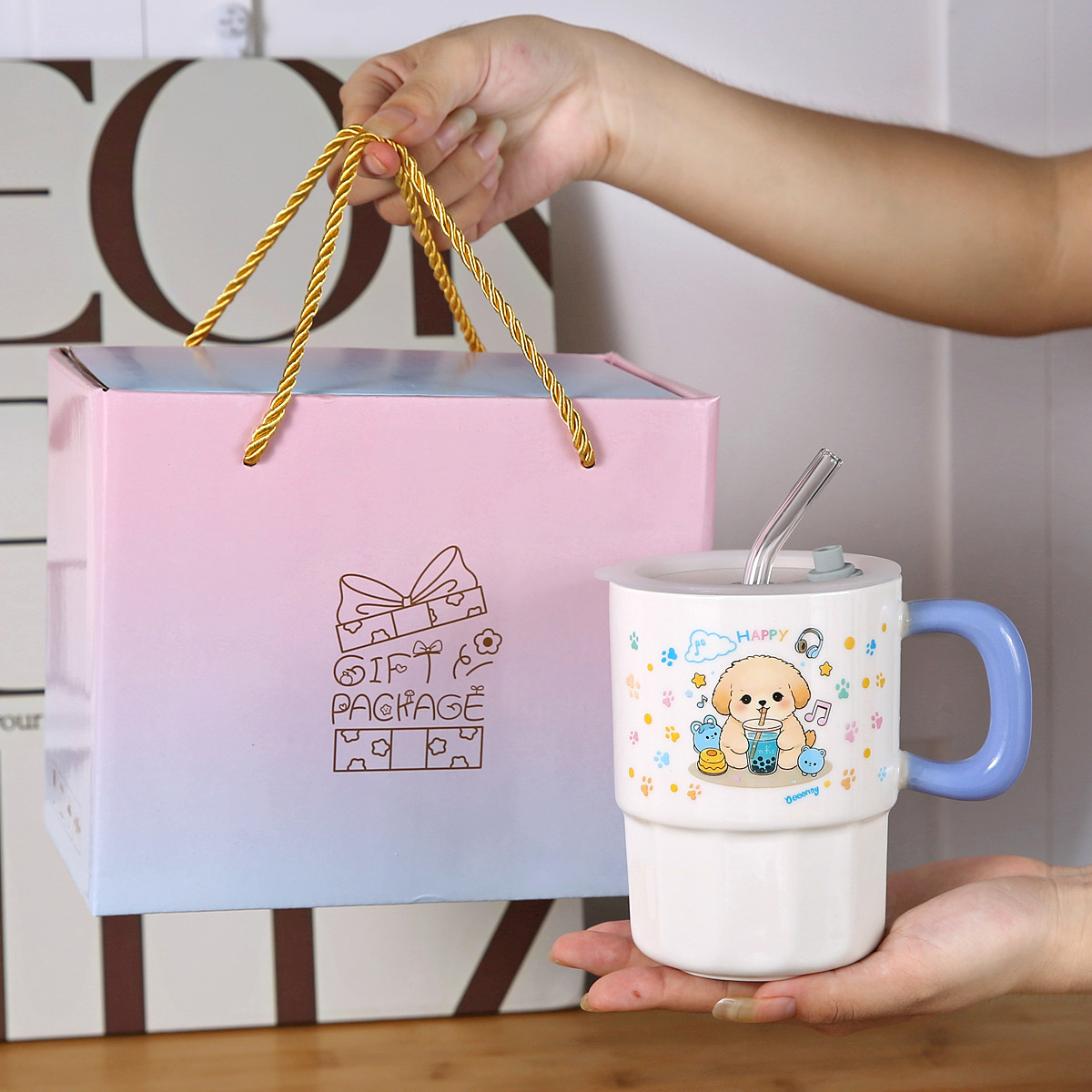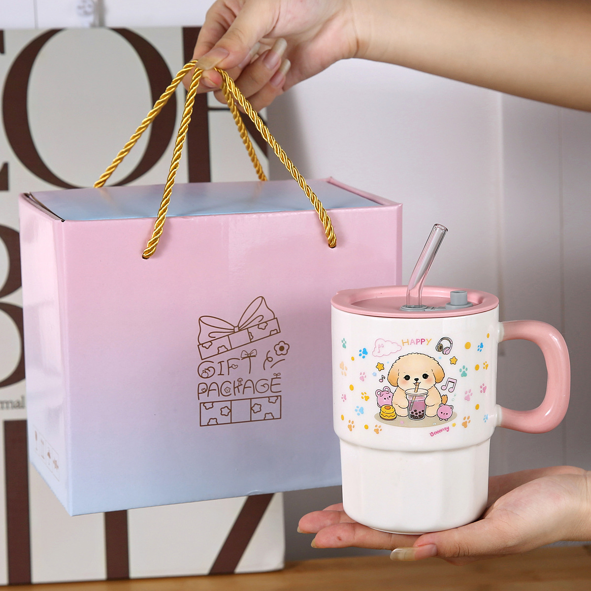 卡通萌宠礼物吸管马克陶瓷水杯子可爱生日陶瓷杯圣诞伴手礼萌趣