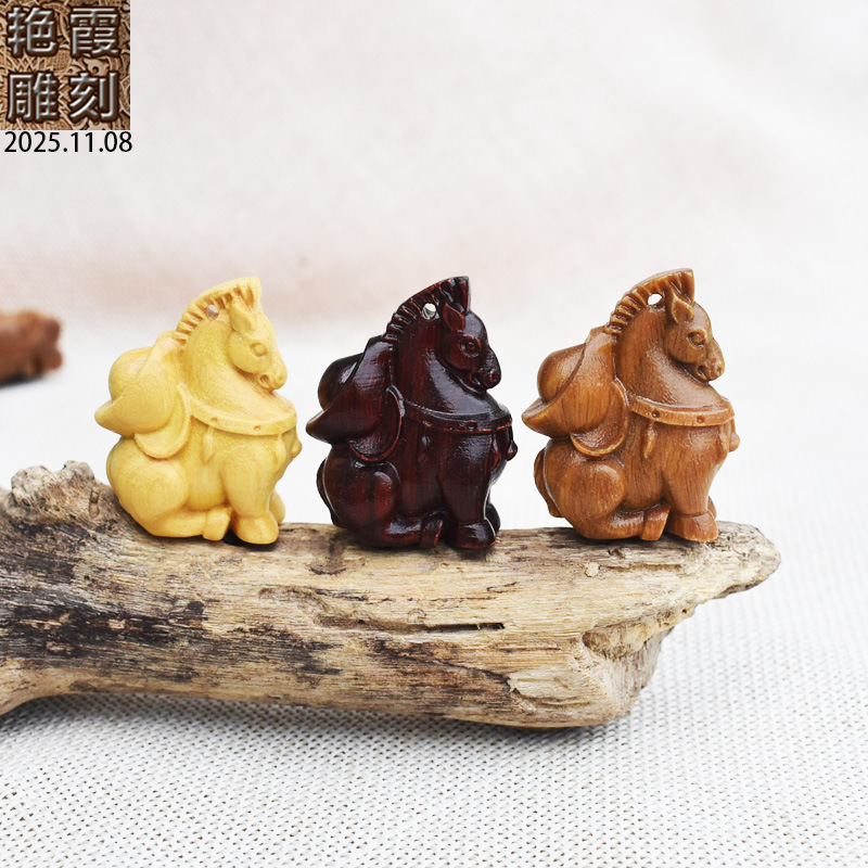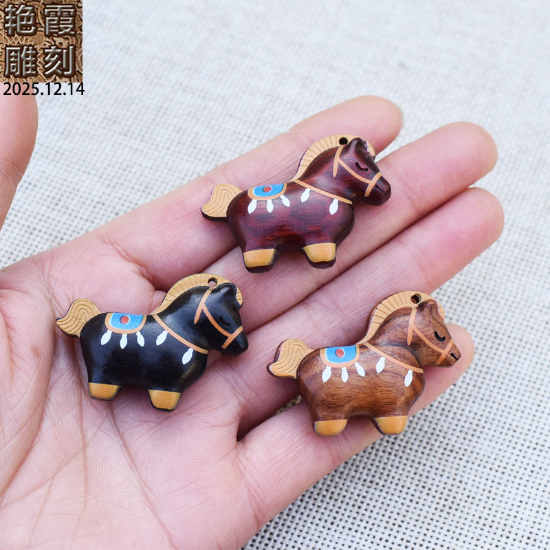 马彩绘马生肖马马上发财diy配件饰品吊坠钥匙扣车挂包挂紫檀黑檀