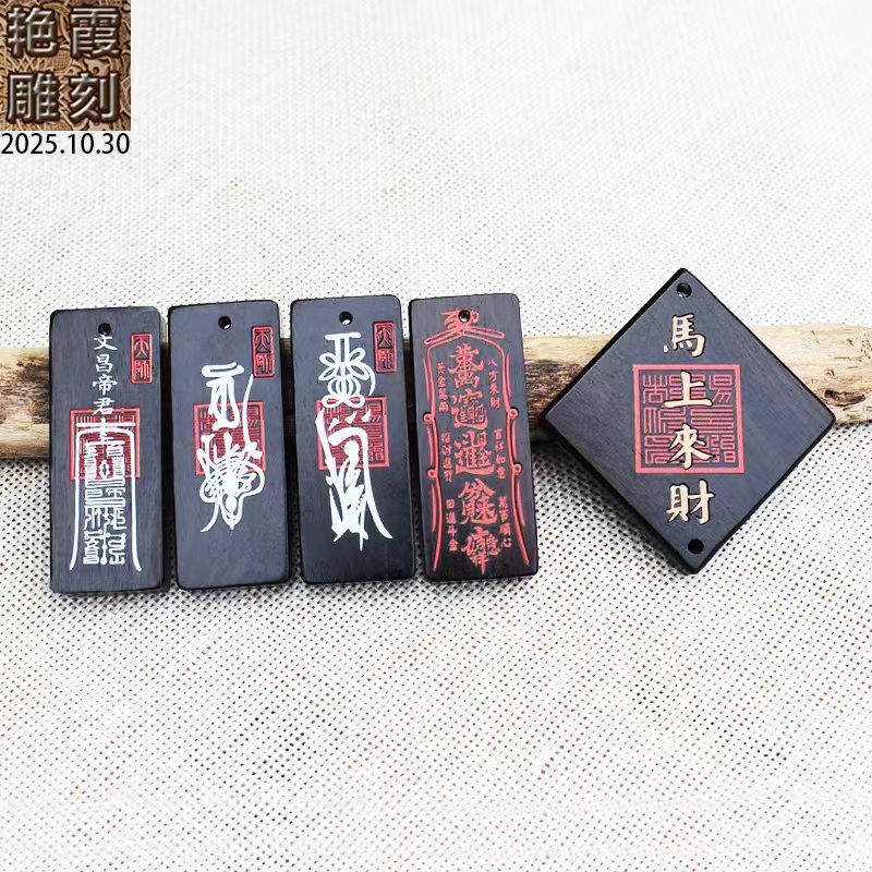 黑檀木彩绘文昌帝君禅意木质配件DIY饰品吊坠钥匙扣车挂无事牌