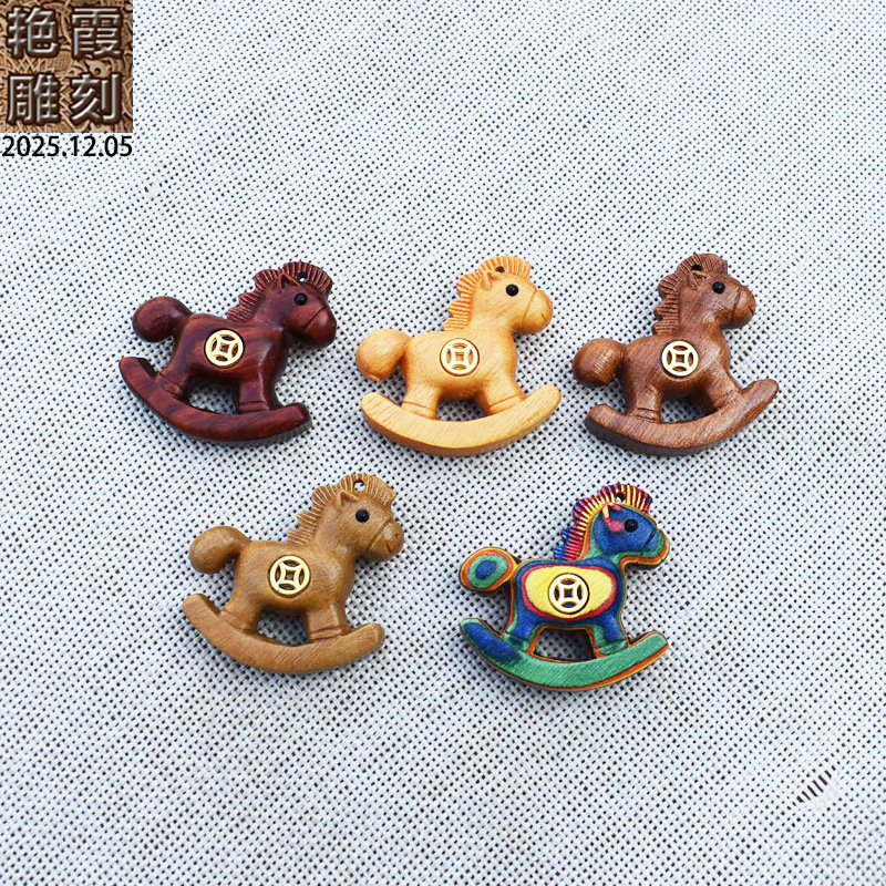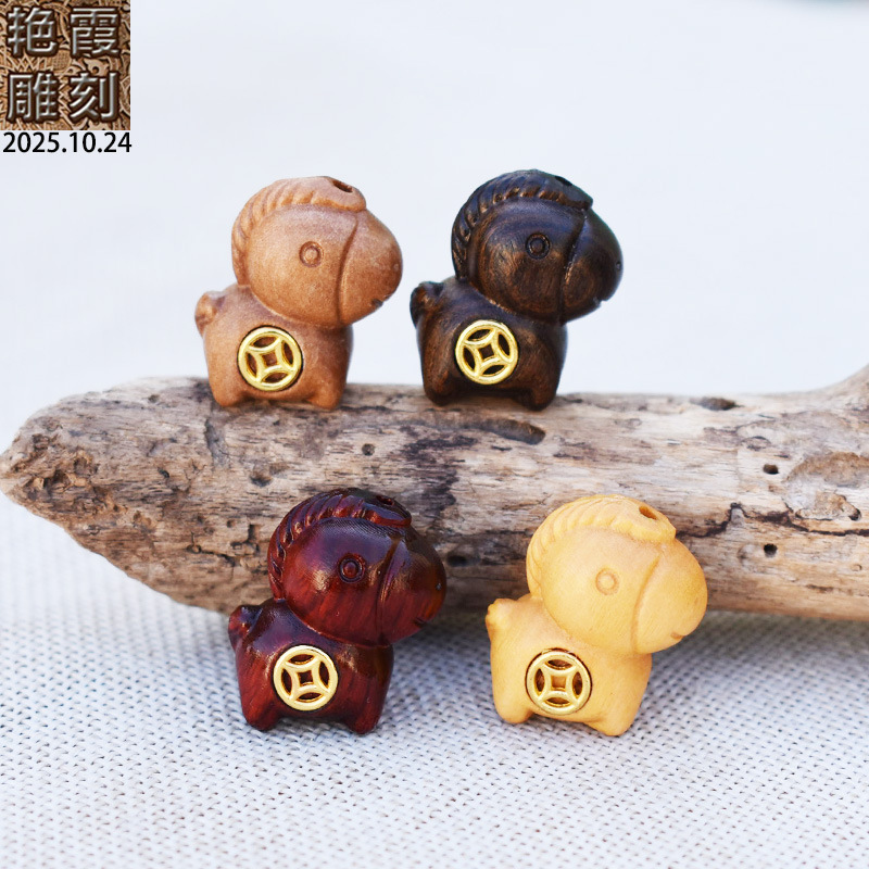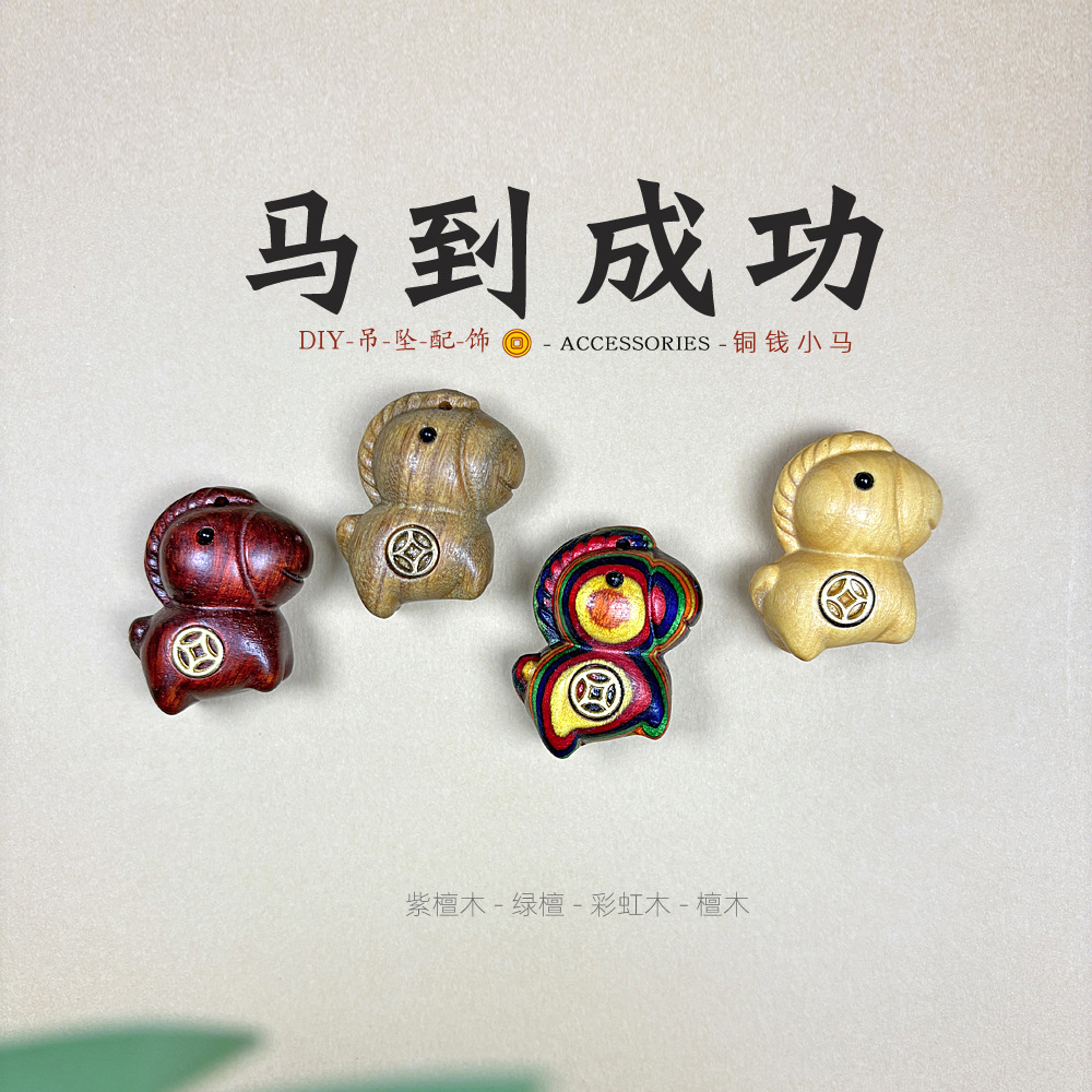 绿檀紫檀彩虹木马上有钱铜钱小马手机链挂件木雕DIY配饰钥匙扣
