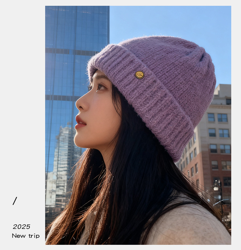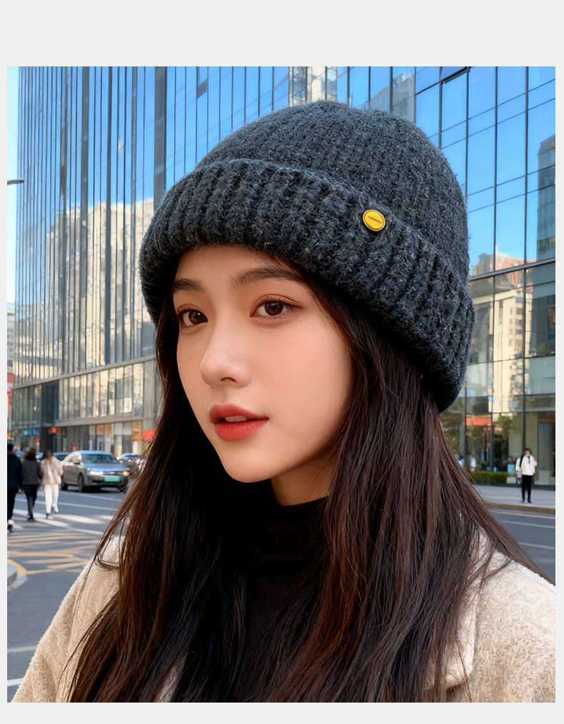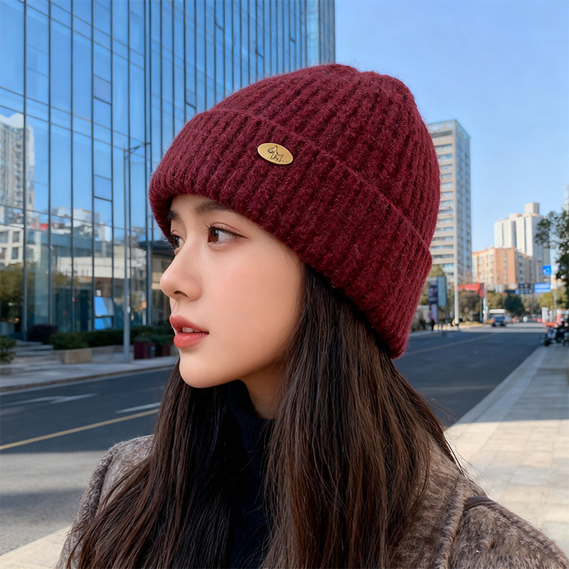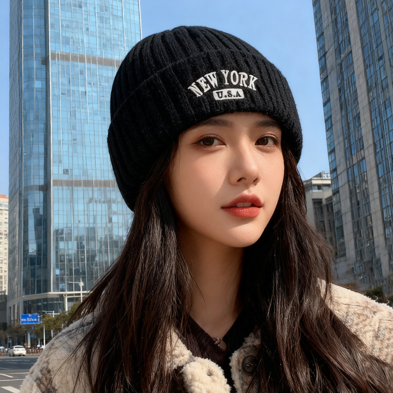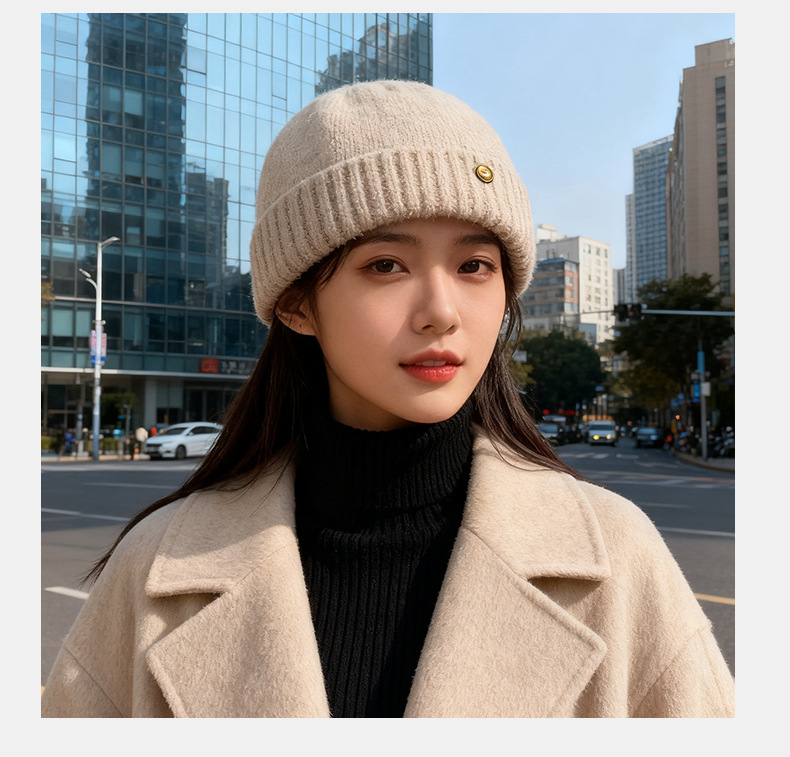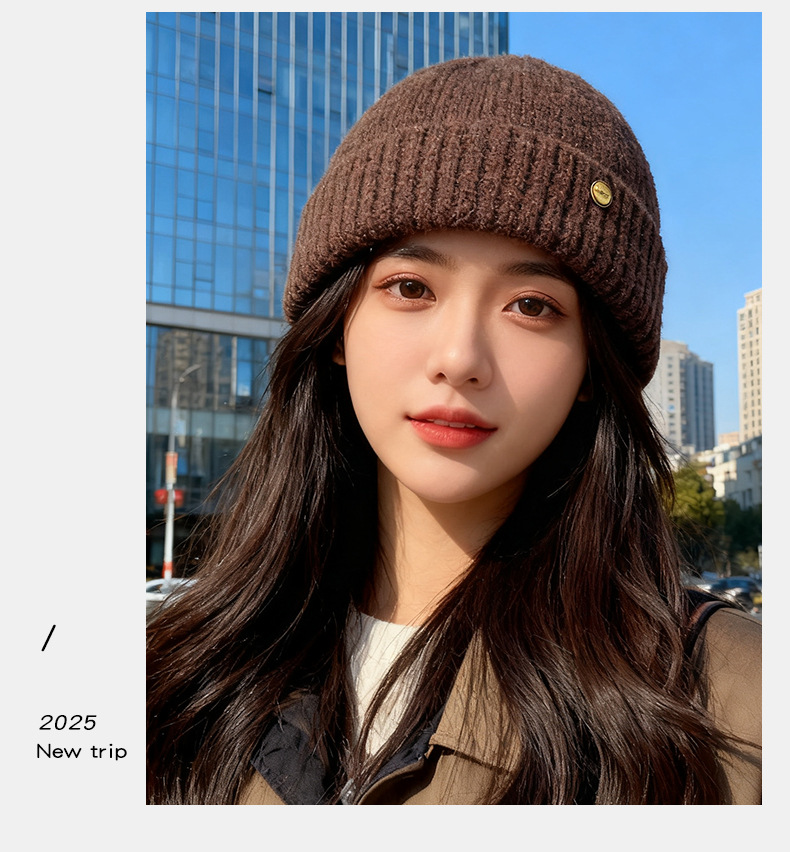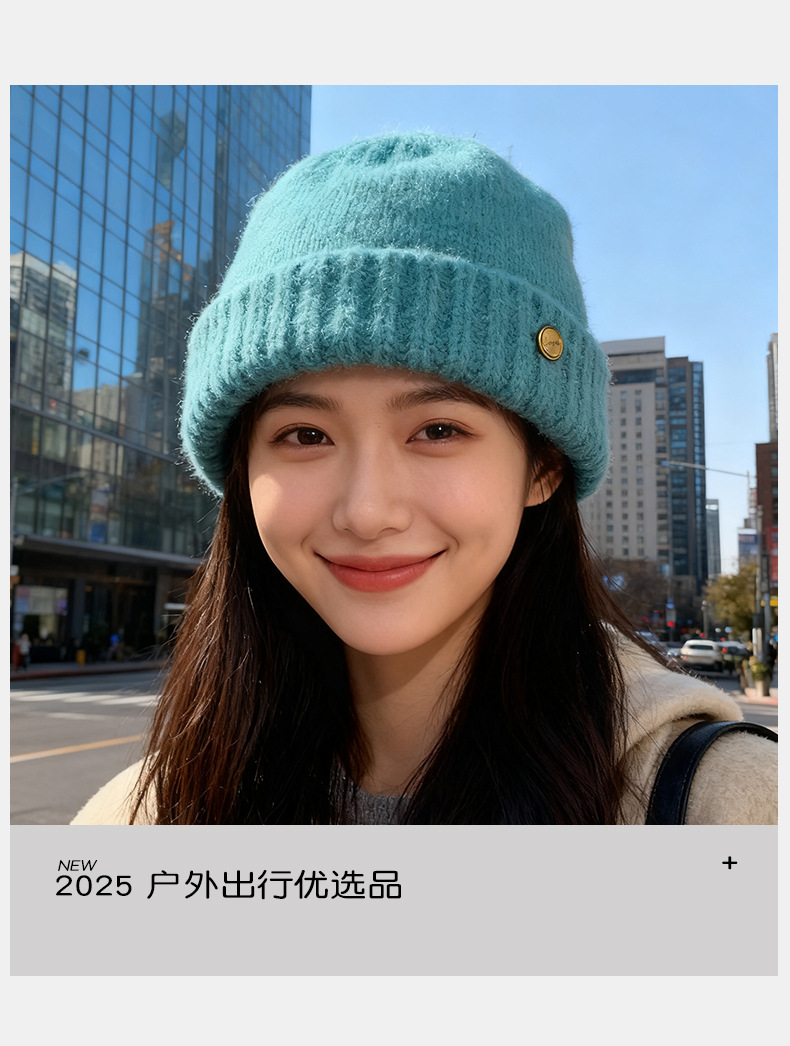 2025秋冬新款韩版简约帽子女保暖百搭护耳针织帽显脸小包头毛线帽