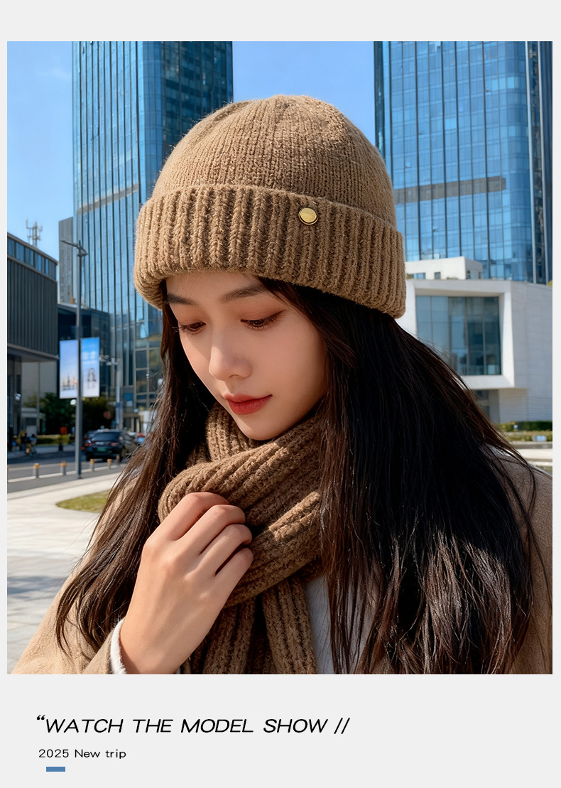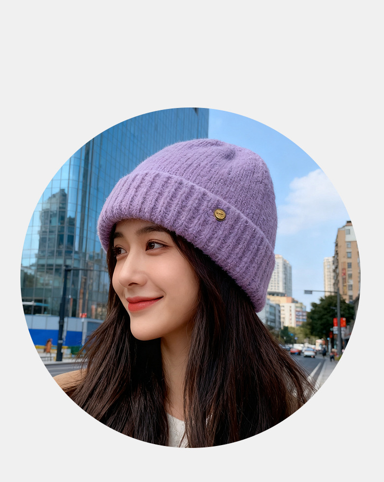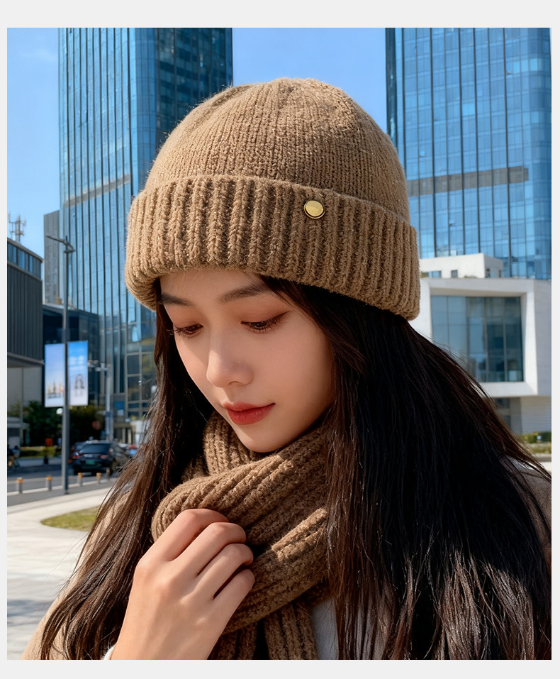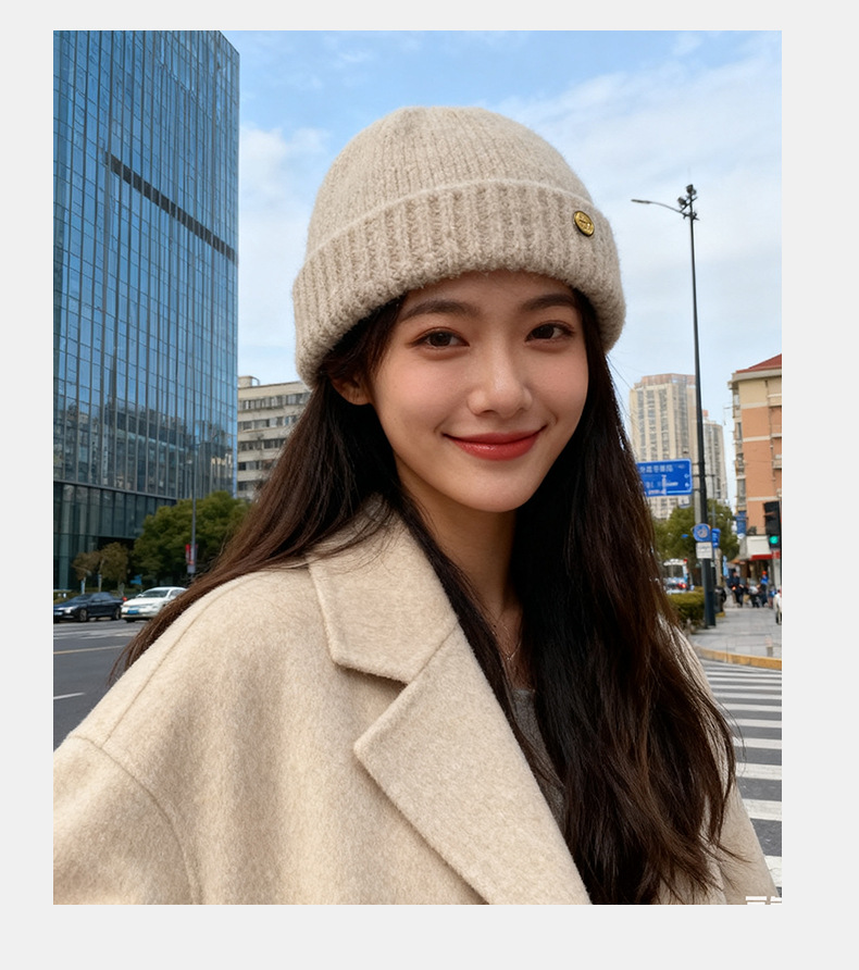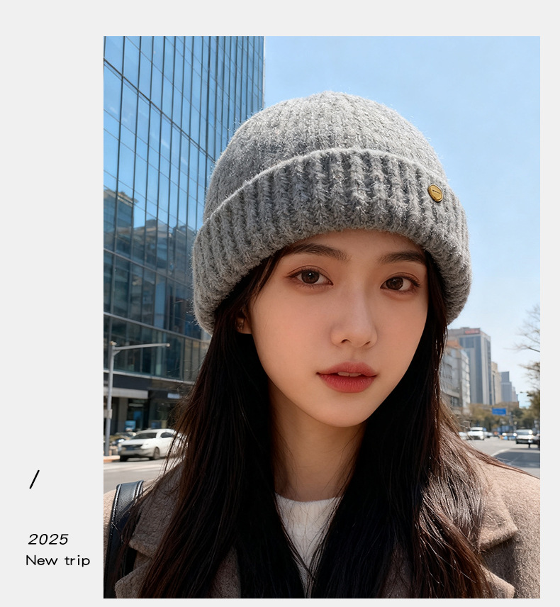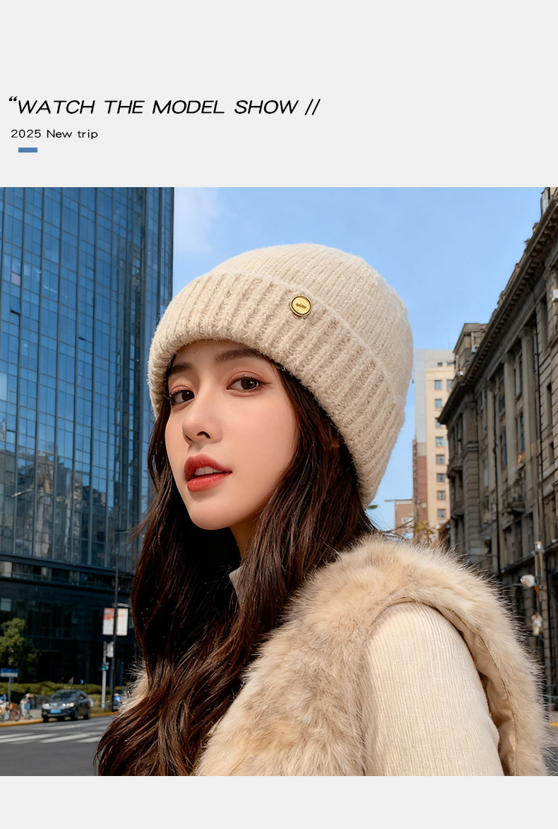 2025秋冬新款韩版简约帽子女保暖百搭护耳针织帽显脸小包头毛线帽