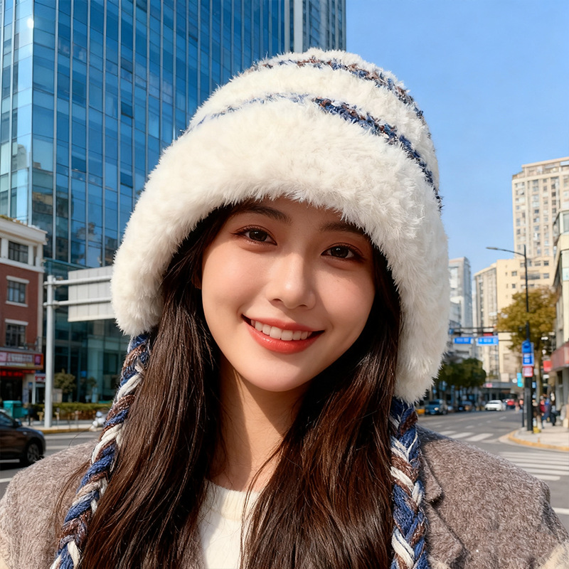 毛绒绒显脸小秋冬大头围帽子女保暖防寒雷锋帽可爱绑带护耳针织帽