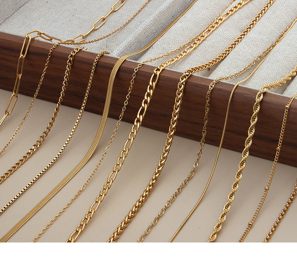 シンプルなゴールドネックレスプレーンチェーンゴールドチェーンレディースファインチタン鋼非退色シングルチェーンゴールドメッキヌードチェーン鎖骨チェーンアクセサリー