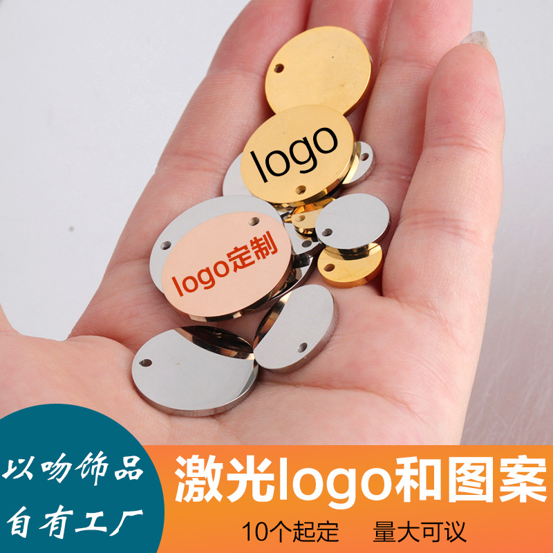 激光刻字logo不锈钢镜面抛光圆片工厂直销小配件diy饰品配件圆牌