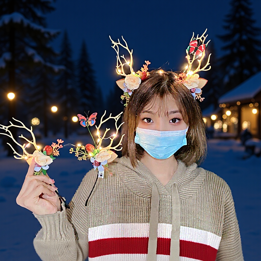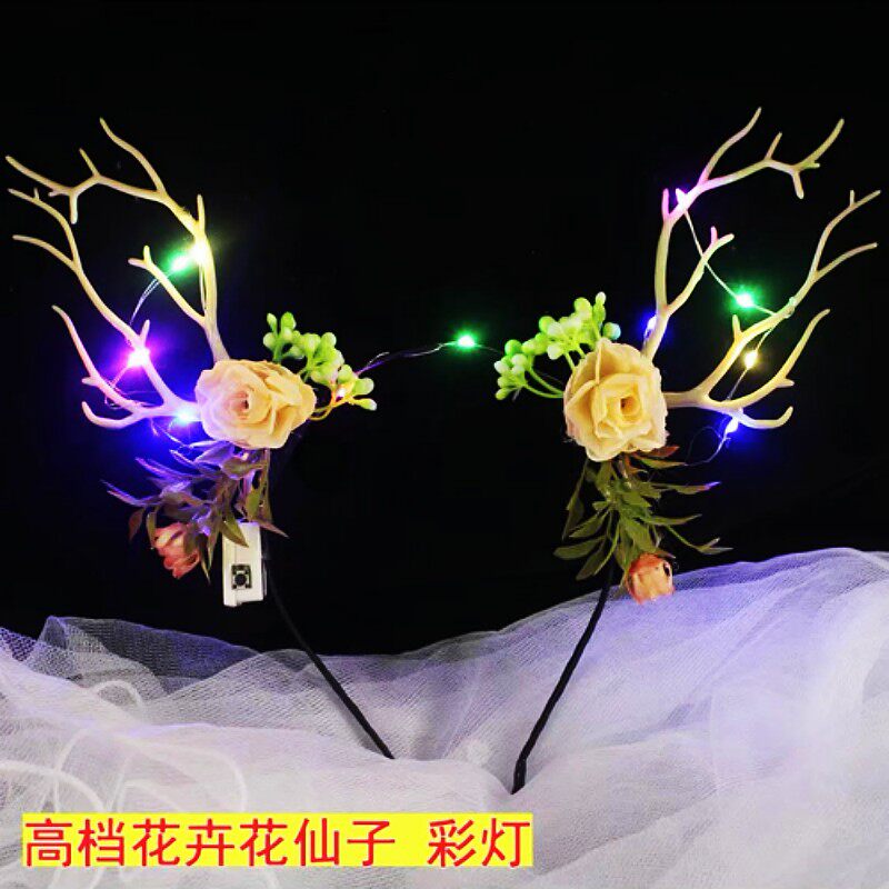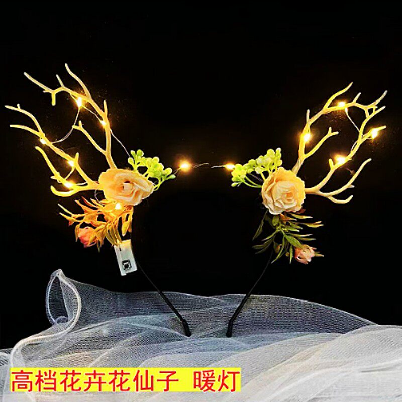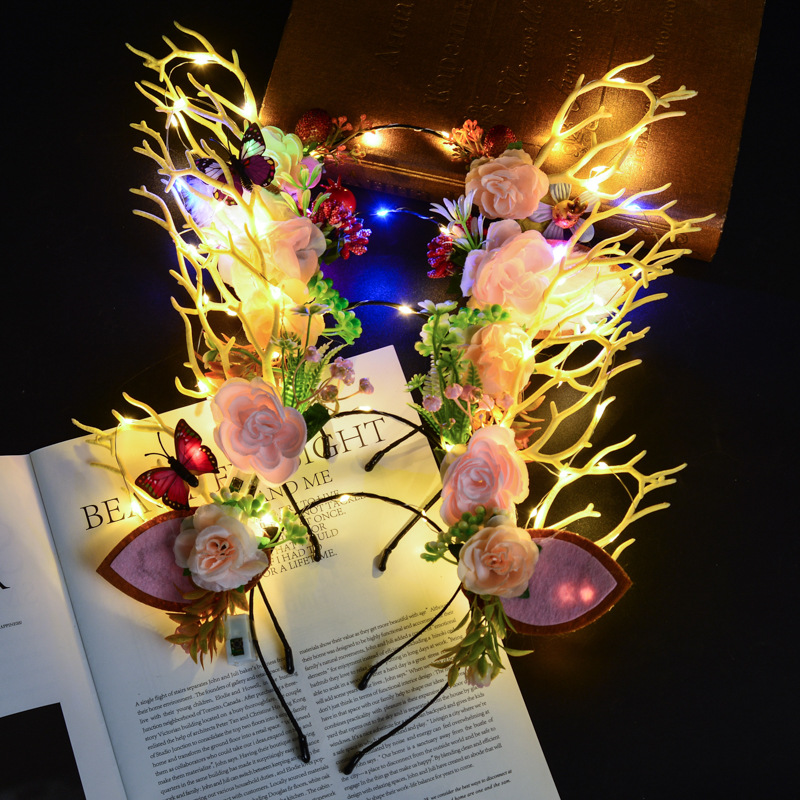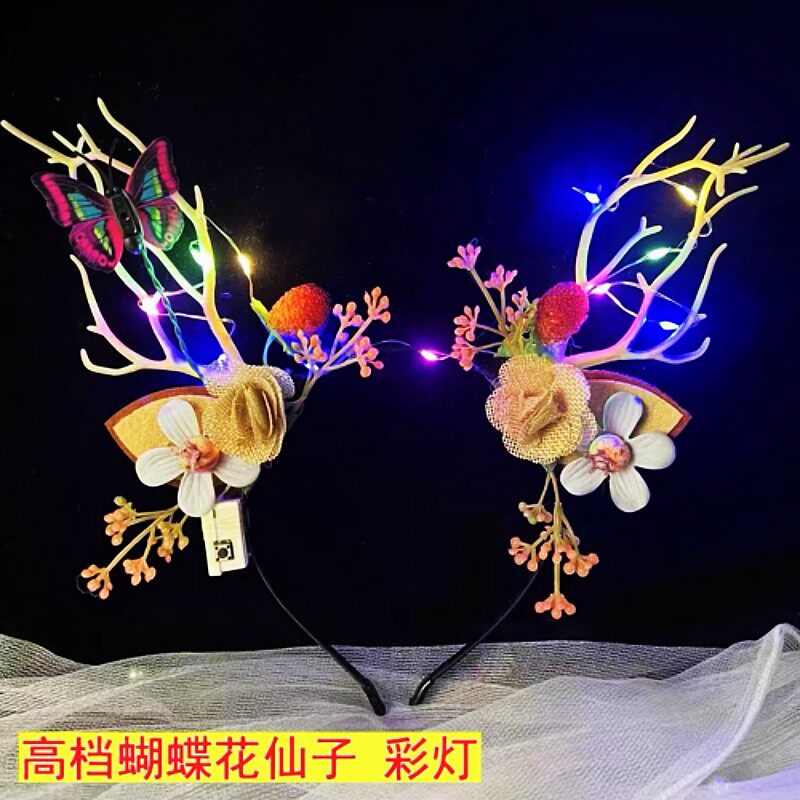 圣诞发箍发光鹿角头箍蝴蝶鹿角头饰高级感森系超仙闪灯花仙子麋鹿