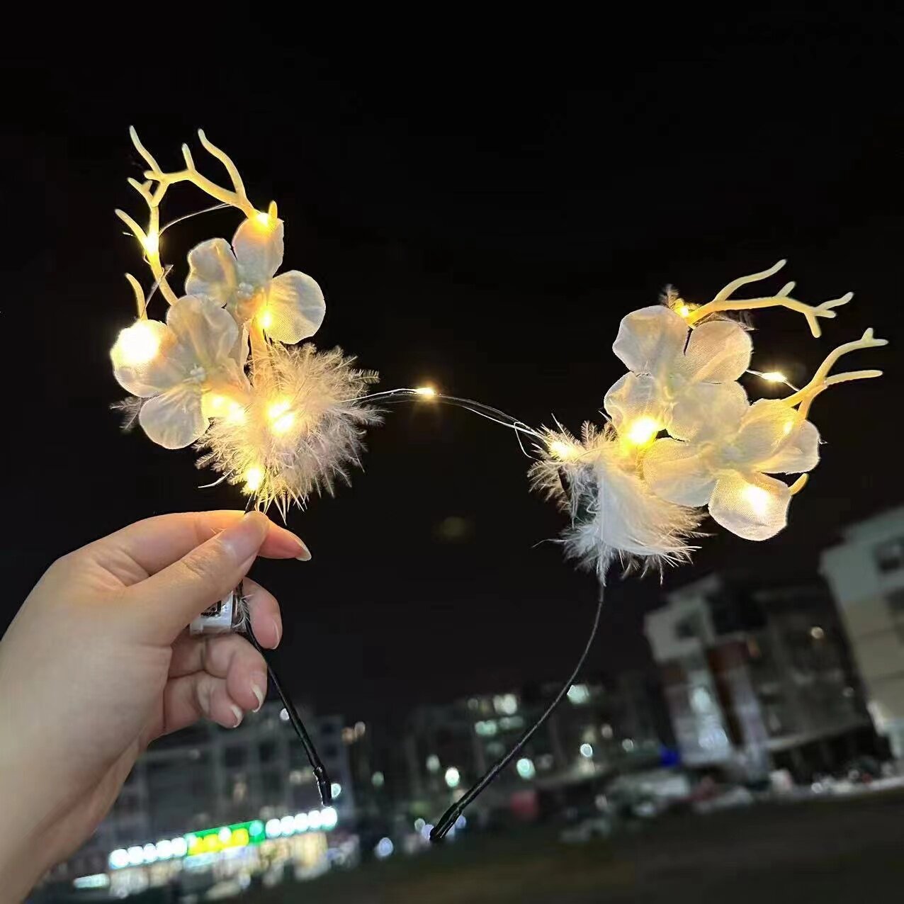 新发光鹿角头箍网红羽毛麋鹿圣诞节头饰闪光发箍夜市玩具摆地摊
