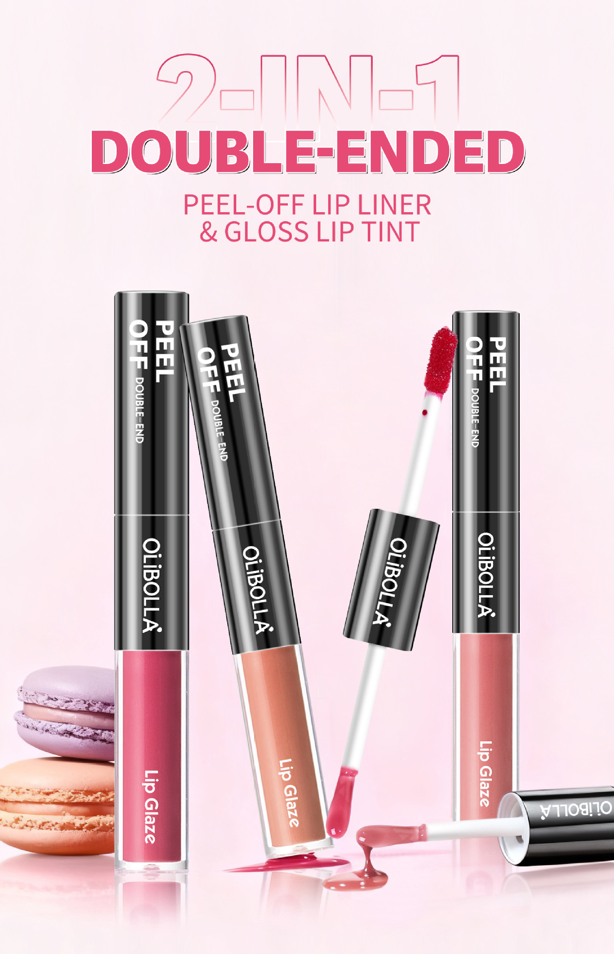 OLIBOLLA跨境爆款双头撕拉唇彩持久防水撕裂式口红唇线笔厂家现货
