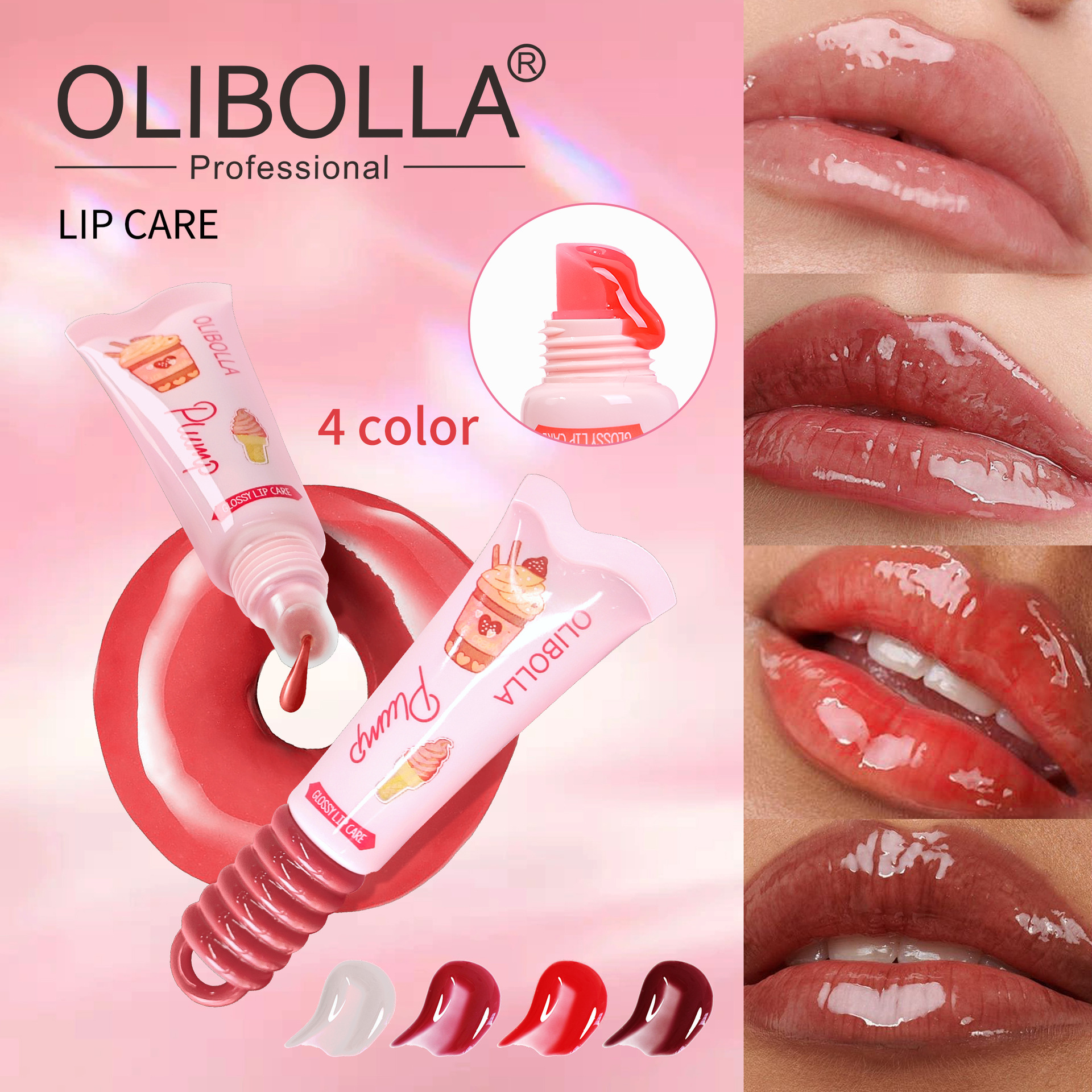 OLIBOLLA跨境专供冰淇淋口味唇油唇釉镜面水光不易沾杯滋润嘴唇