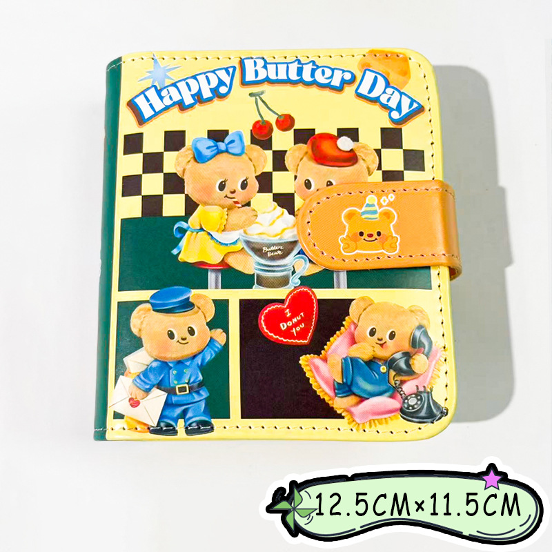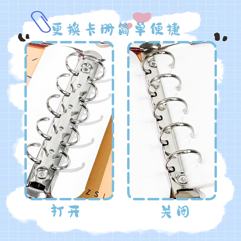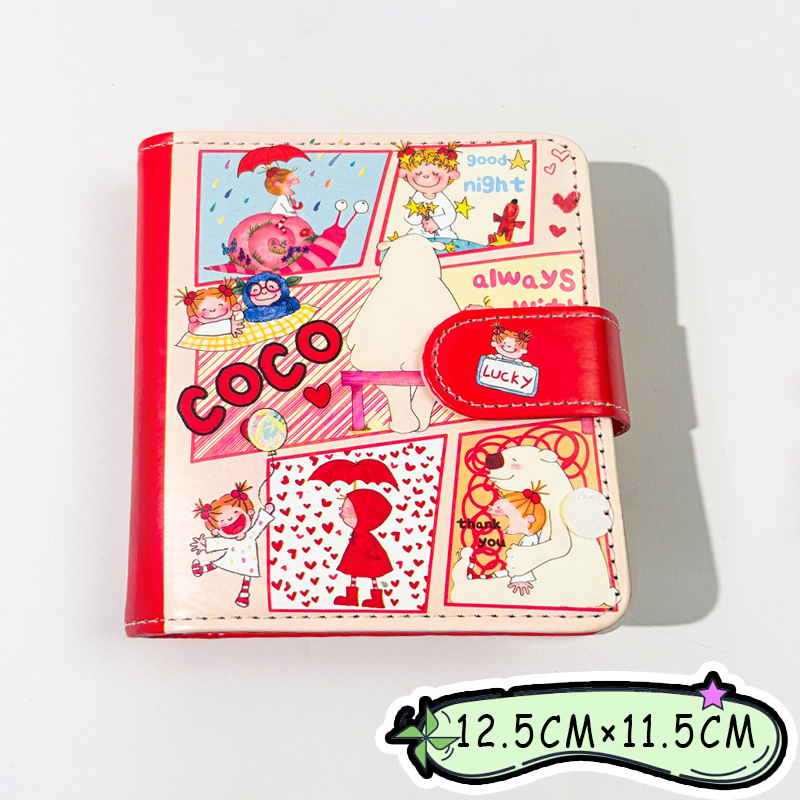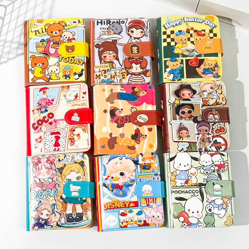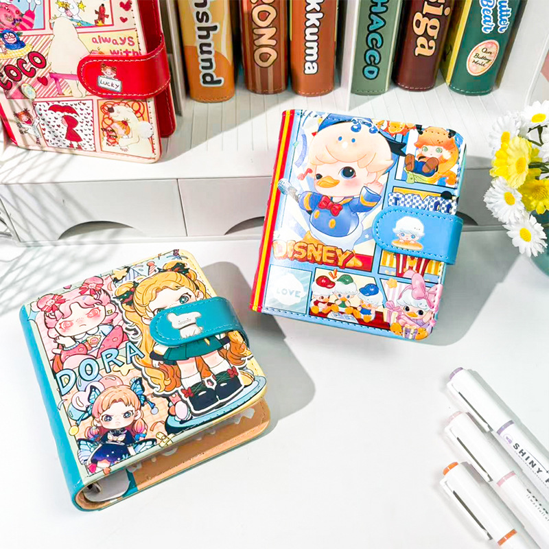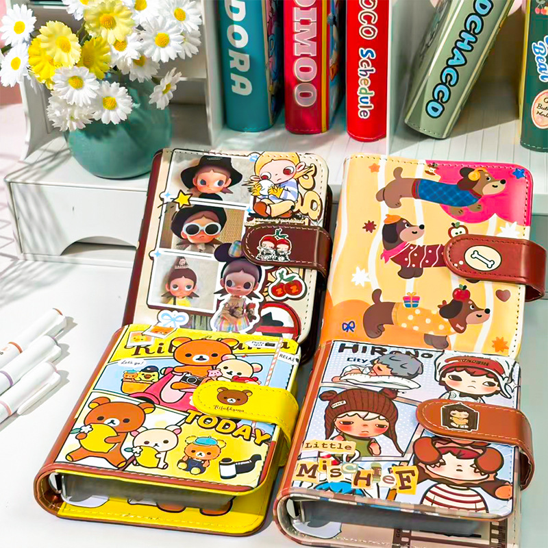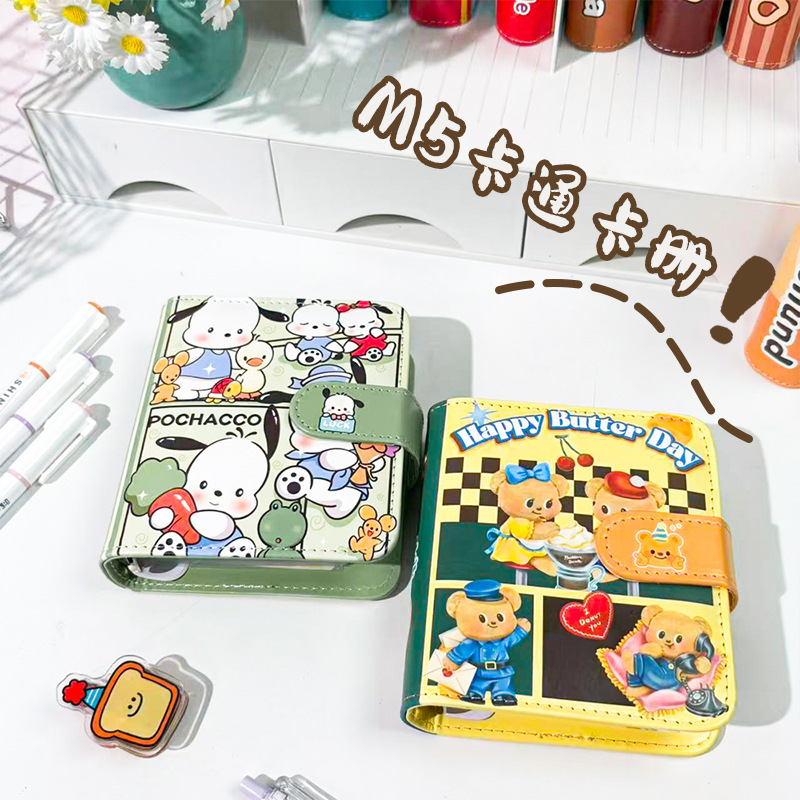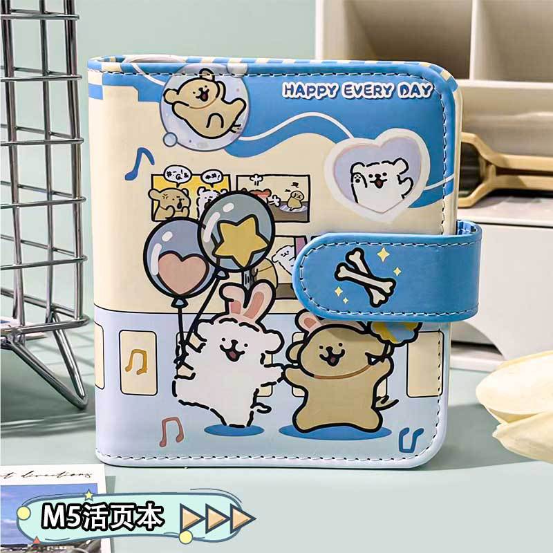 M5皮面笔记本可爱高颜值一宫格卡册ins磁扣软皮卡通活页本手账本