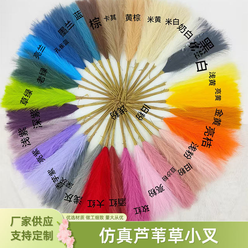 55cm小叉仿真芦苇草干花高档摆件桌面办公装饰彩色仿真芦苇批发