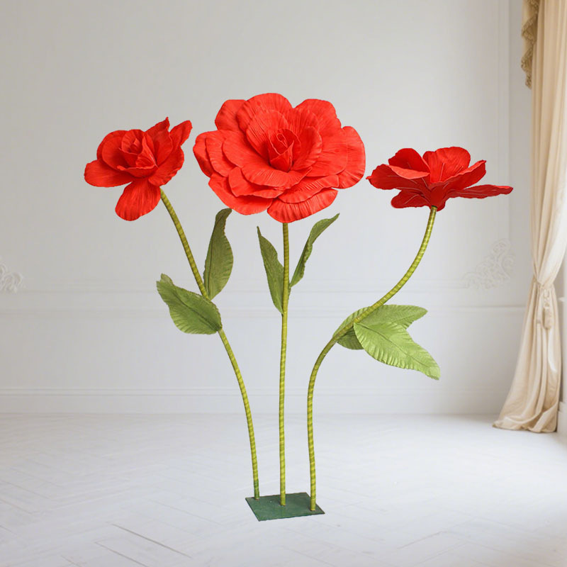 ベルベット牡丹の花 ウェディング用造花 ショーウィンドウ用フラワー スタジオ撮影用 赤い造花 ローズ 写真撮影用小道具