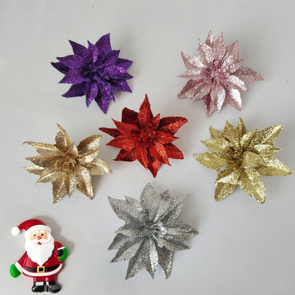 9 センチメートルクリスマスフラワーヘッドゴールドパウダー模擬花グリッタークリスマスフラワークリスマスツリー装飾ホリデーデコレーションガーランドアクセサリー