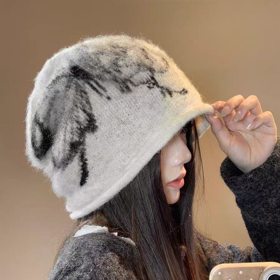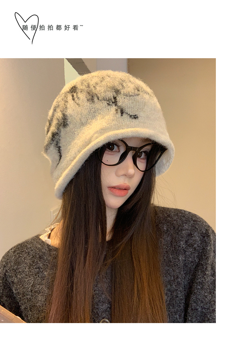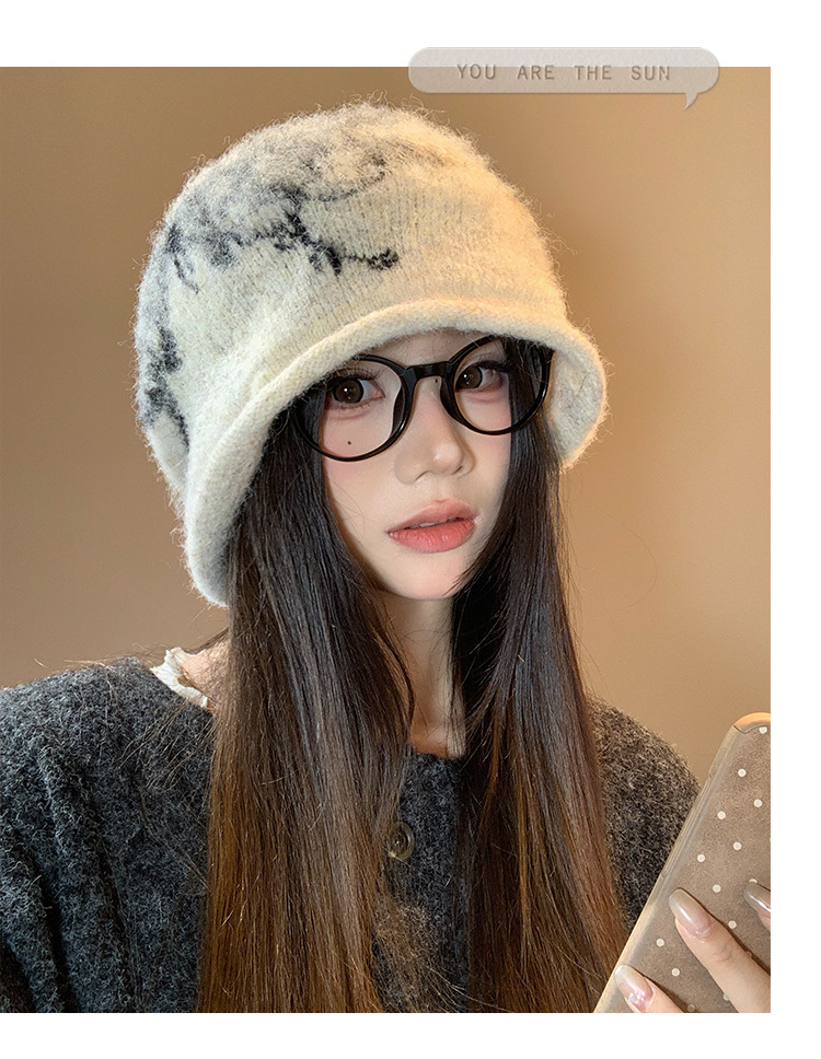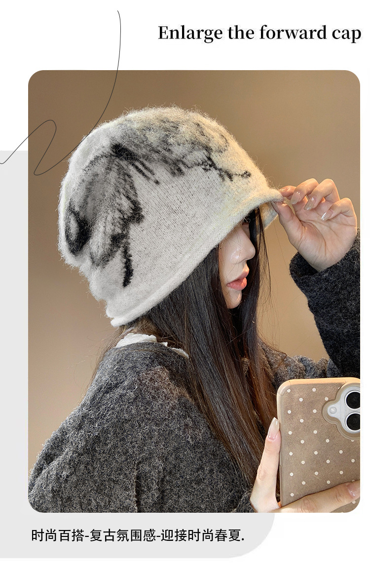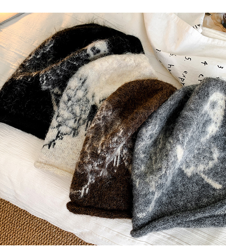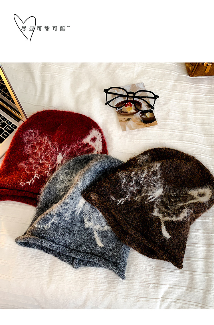 费尔岛提花毛绒针织渔夫帽子女2025新款冬季加厚保暖护耳防寒盆帽