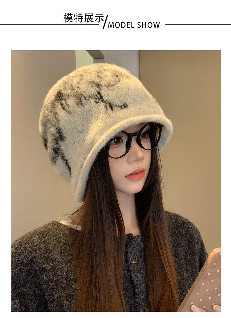 韩系蝴蝶结堆堆帽复古宽松毛绒针织帽秋冬季保暖百搭显脸小冷帽女