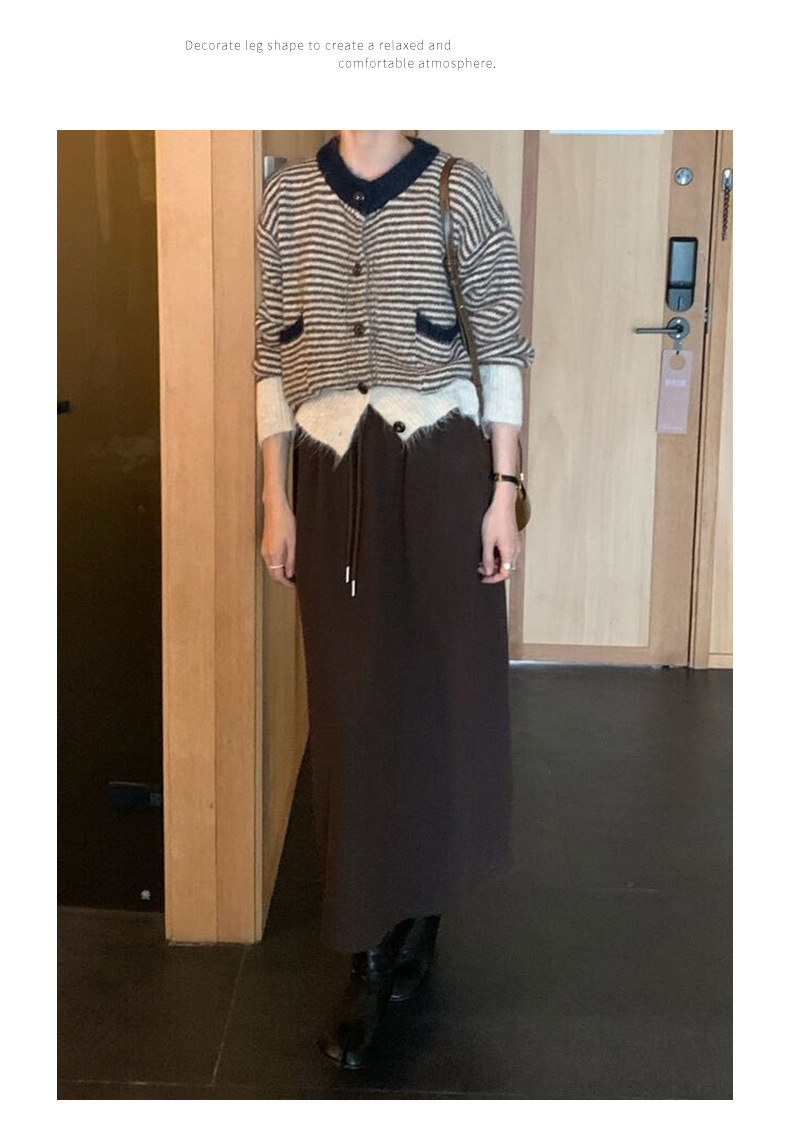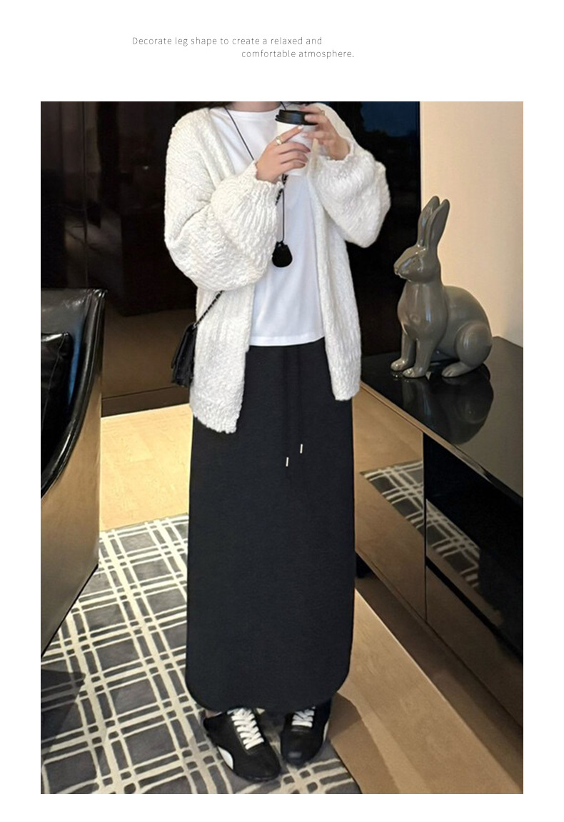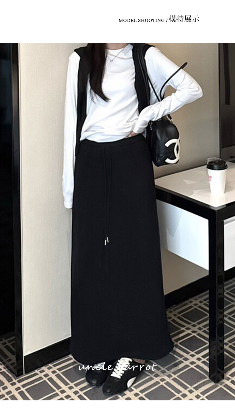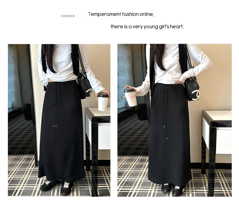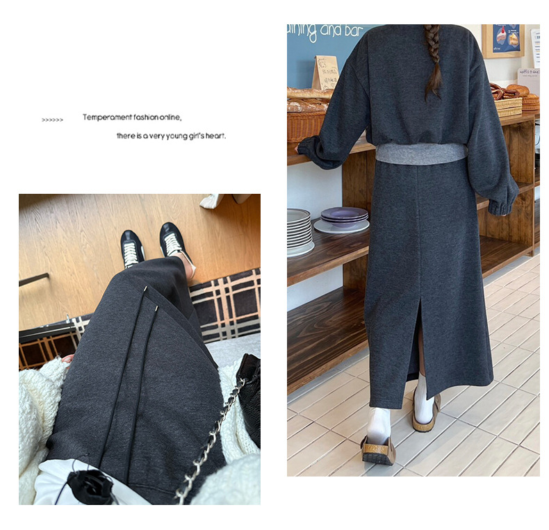 灰色设计感开叉针织半身裙女秋冬松紧腰抽绳百搭裙子中长款直筒裙