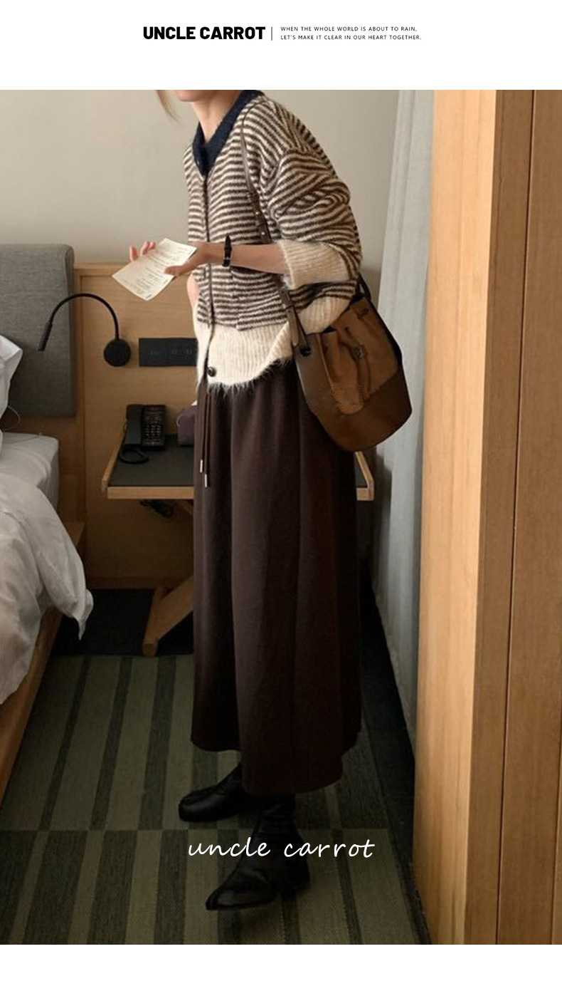 萝卜大叔时尚细坑条系带南瓜裙子时尚百搭大摆伞裙灯芯绒半身裙女