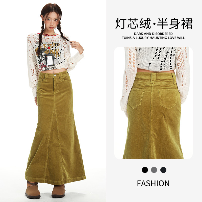 萝卜大叔灯芯绒加厚半身裙女秋冬2026新款长款鱼尾裙复古包臀长裙