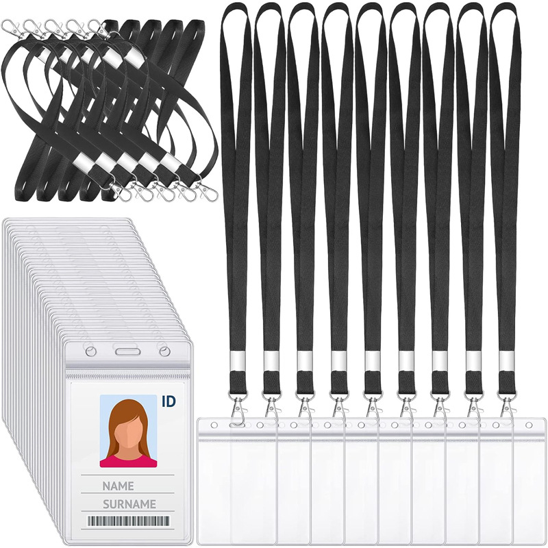 亚马逊热销工作证件卡套带挂绳胸牌胸卡身份证厂牌卡套PVC透明卡