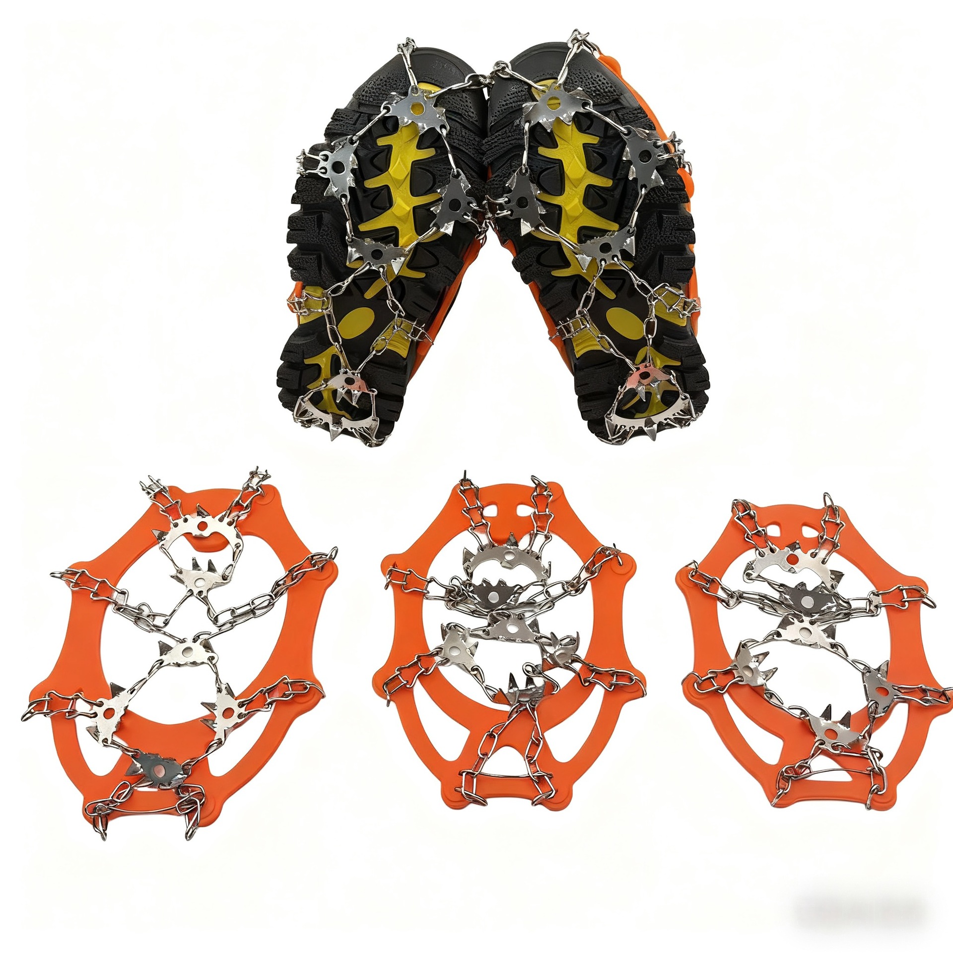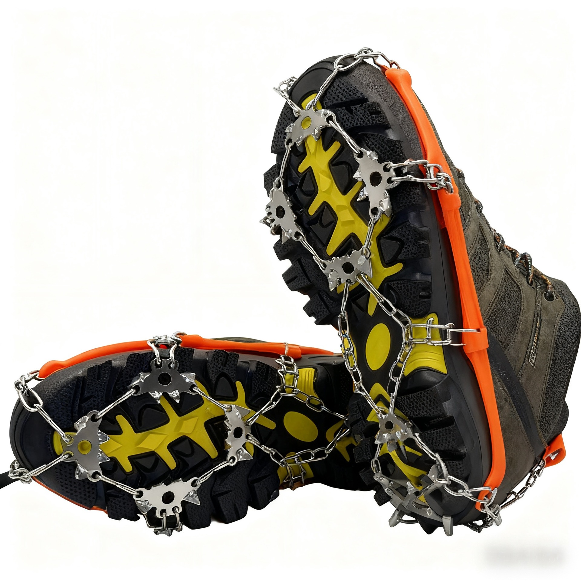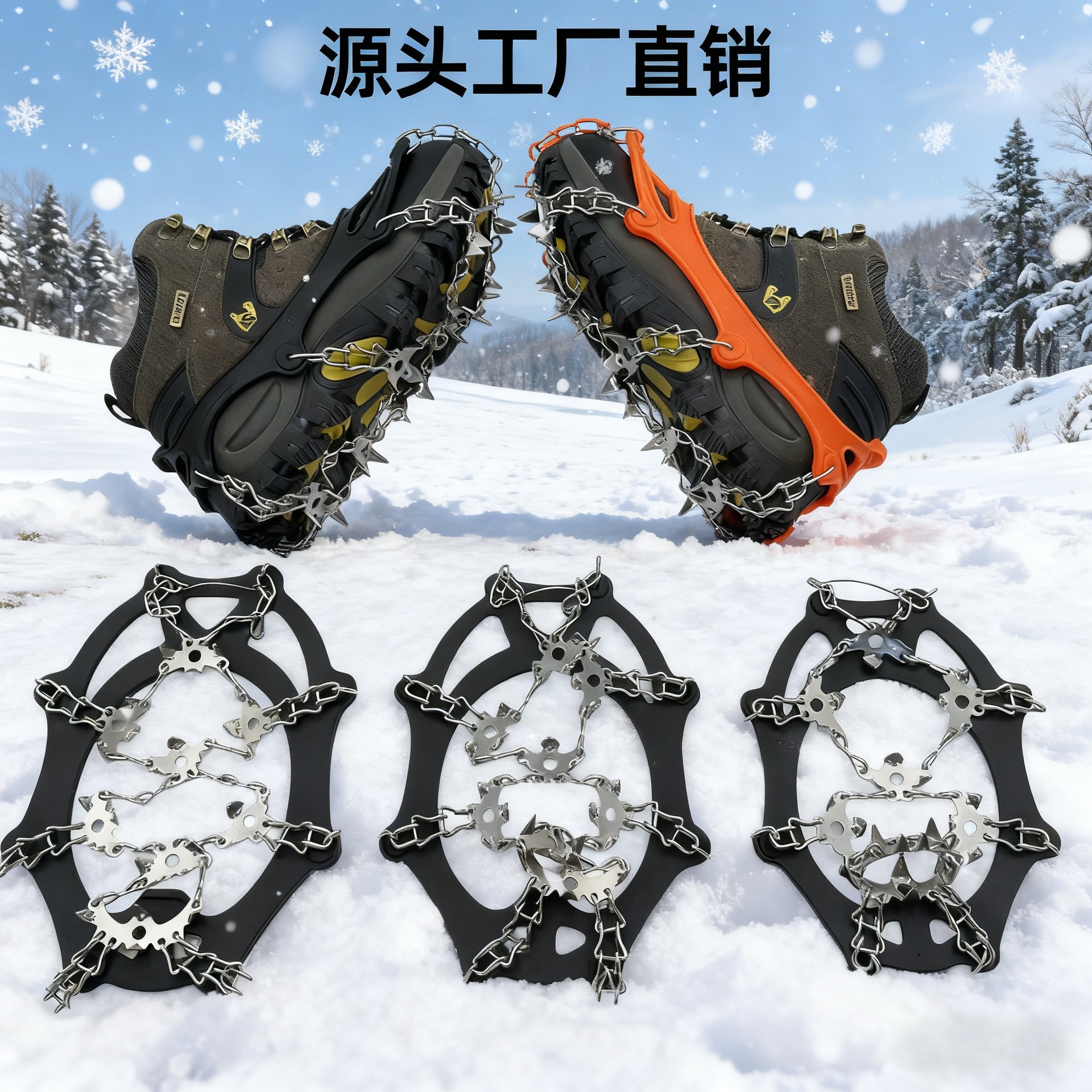 32齿链条冰爪新品户外防滑鞋套不锈钢冰面雪地防摔脚套登山攀冰冰