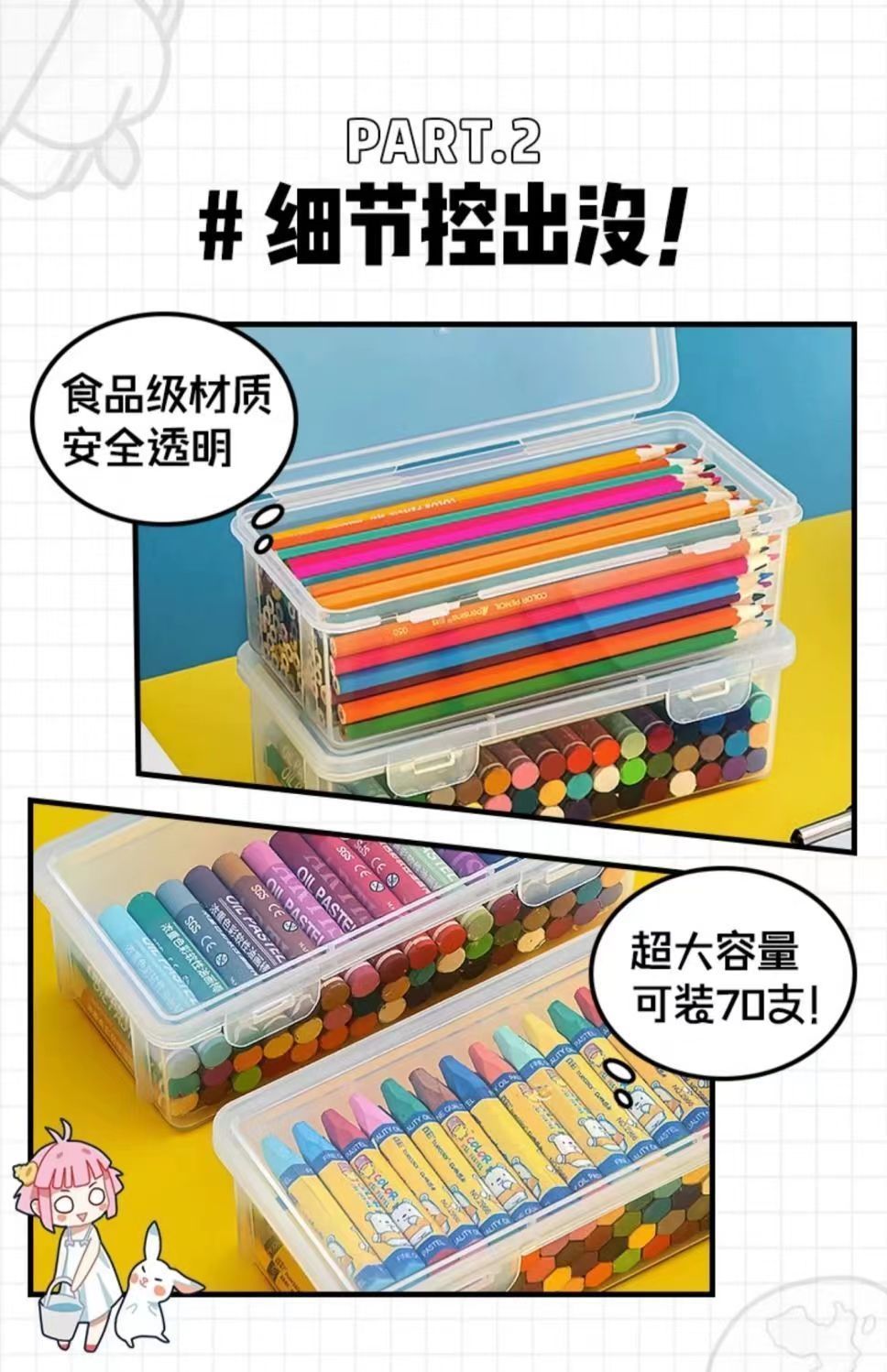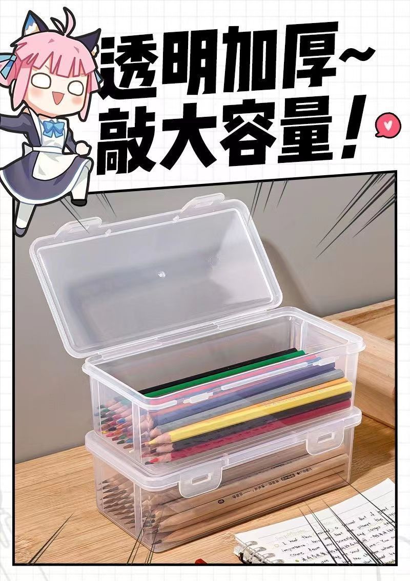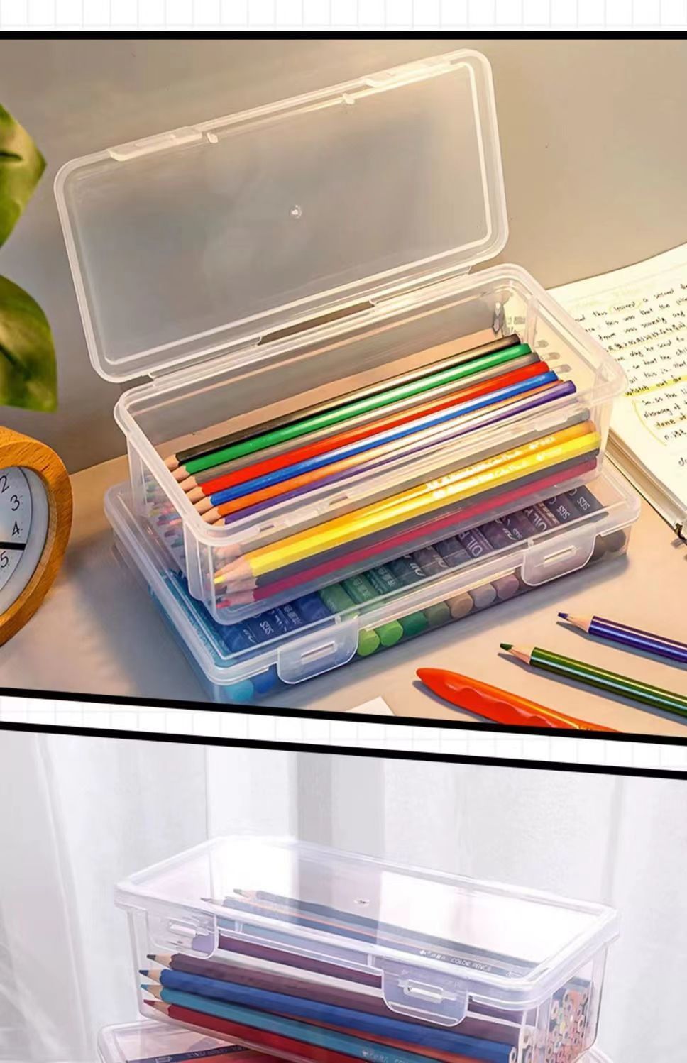 铅笔收纳盒大容量透明文具收纳盒笔筒装彩铅儿童蜡笔绘画素描笔袋