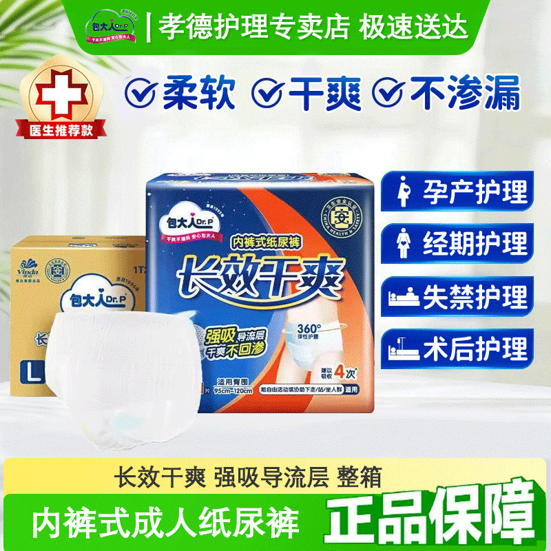 包大人夜用成人拉拉裤内裤式纸尿裤老人用老年人尿不湿M/L/XL整箱