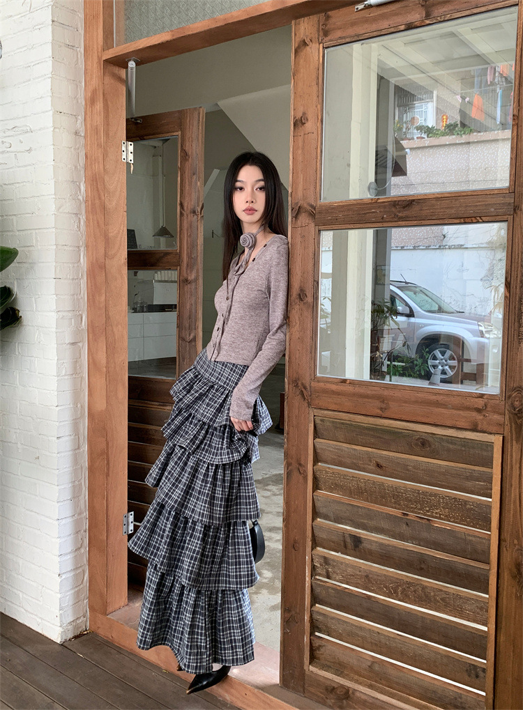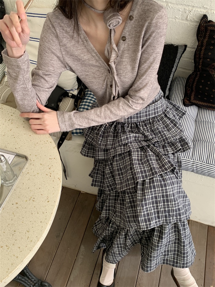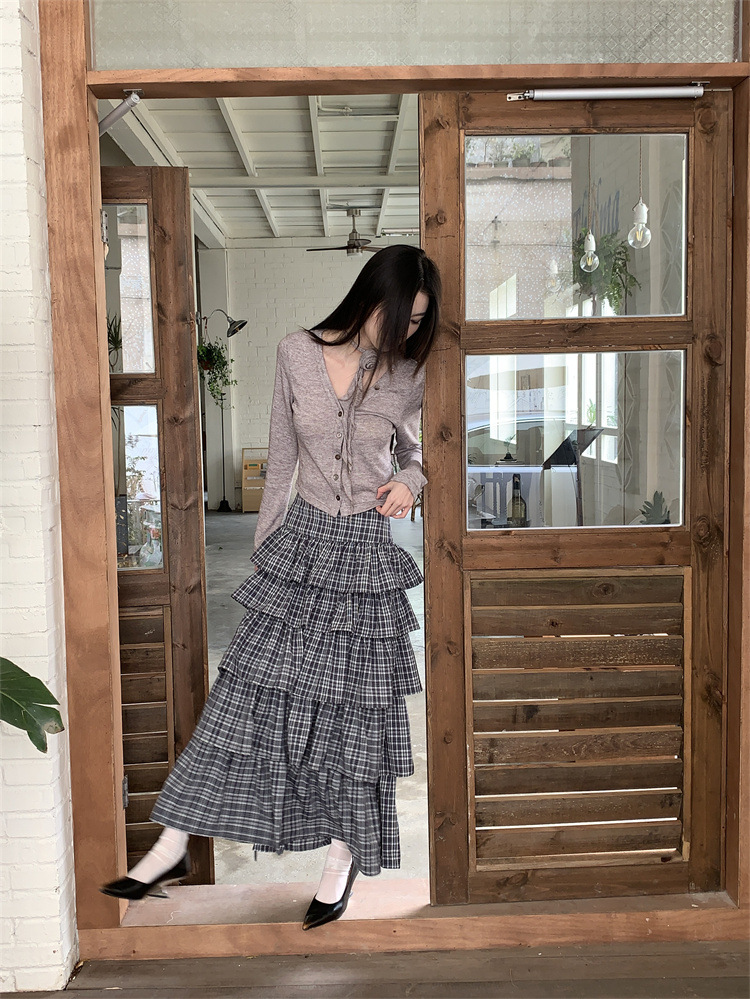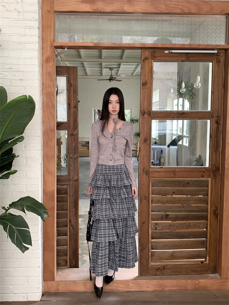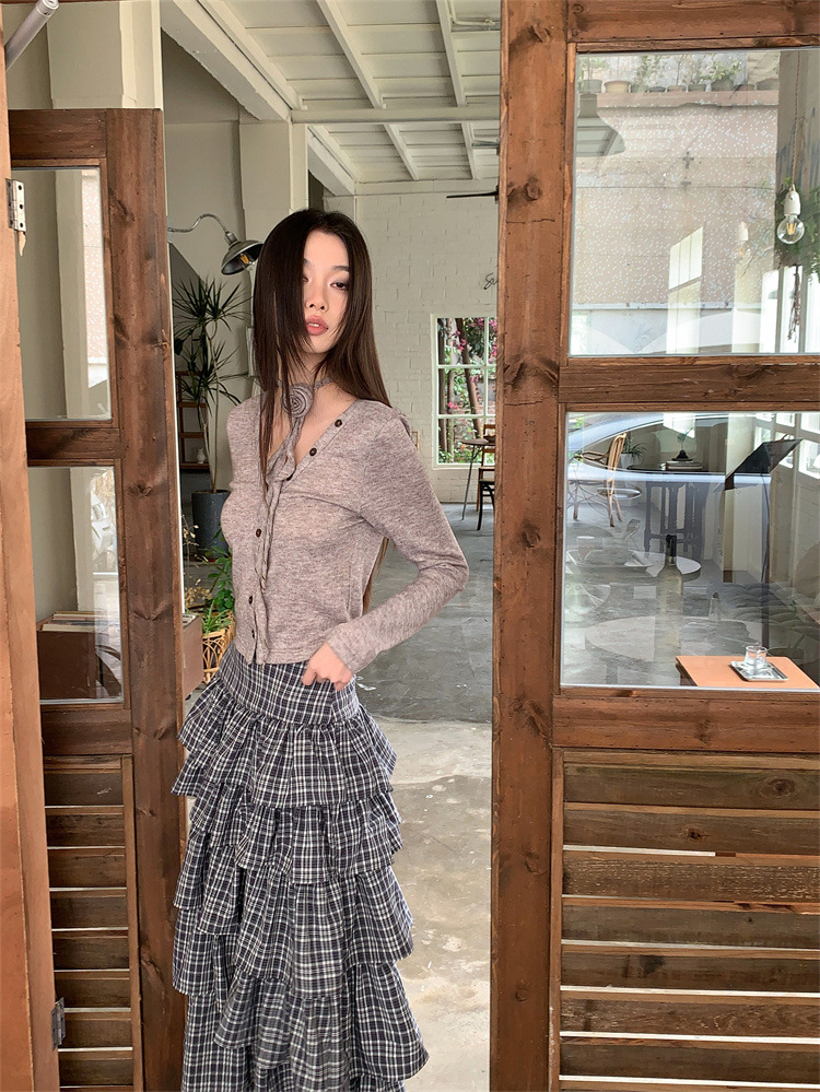 秋冬新款灰紫色上衣v领开衫修身内搭打底衫女