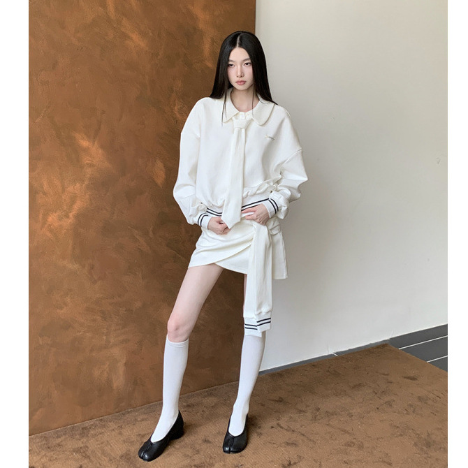 学院风俏皮可爱娃娃领卫衣系带可拆卸半身裙女秋两件套