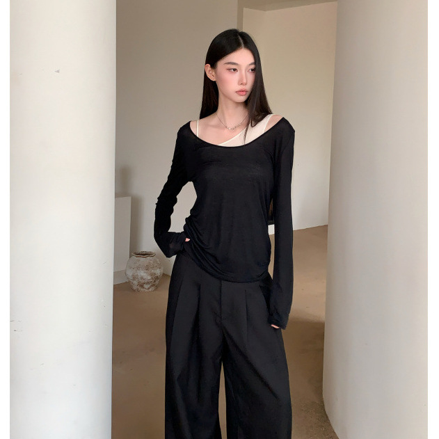 不对称针织衫女2025秋季新款修身显瘦感两件套上衣