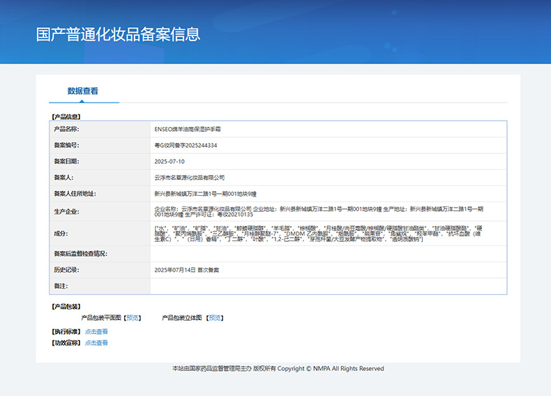 非特化妆品备案证号 粤G妆网备字2025244334