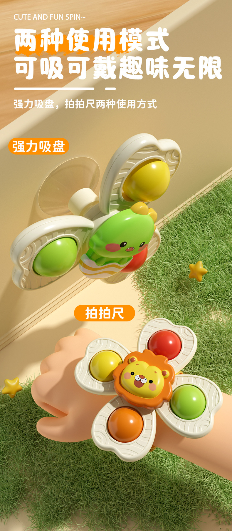儿童卡通手环陀螺玩具吸盘转转乐可啃咬幼儿手指按压趣味益智早教