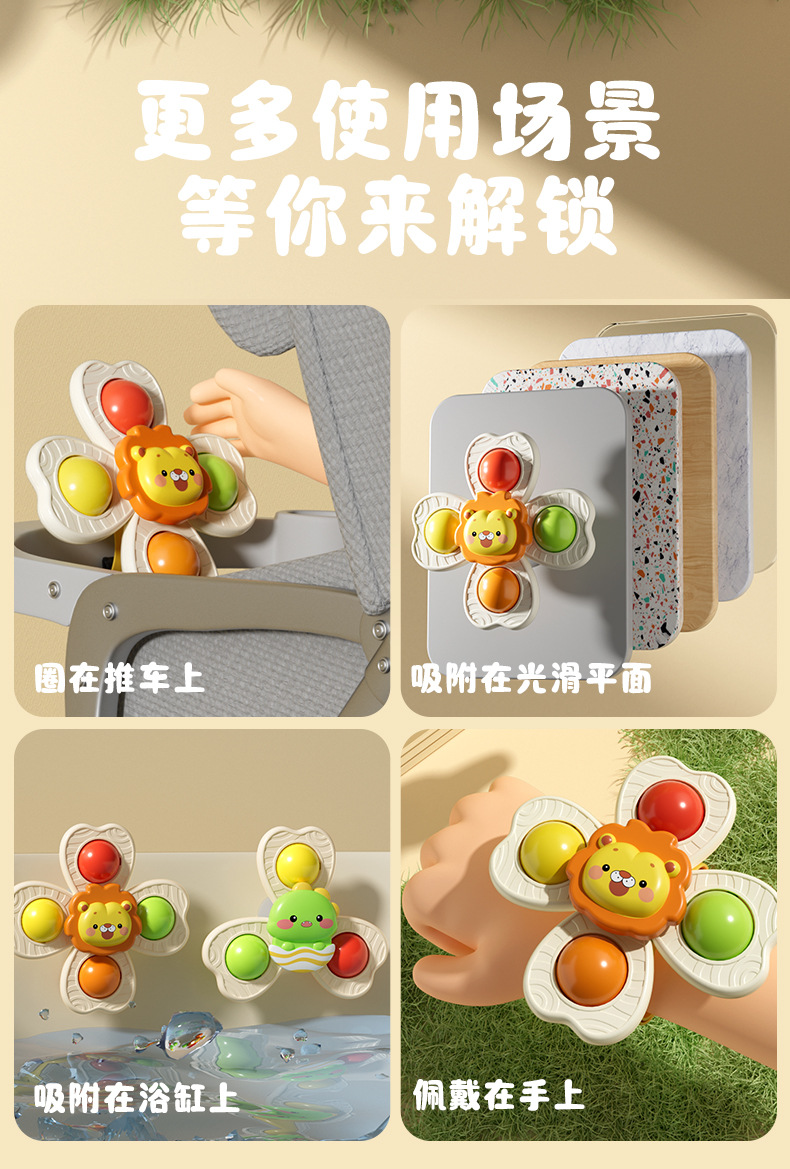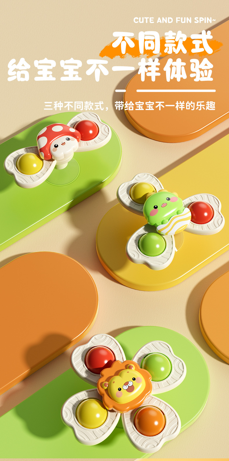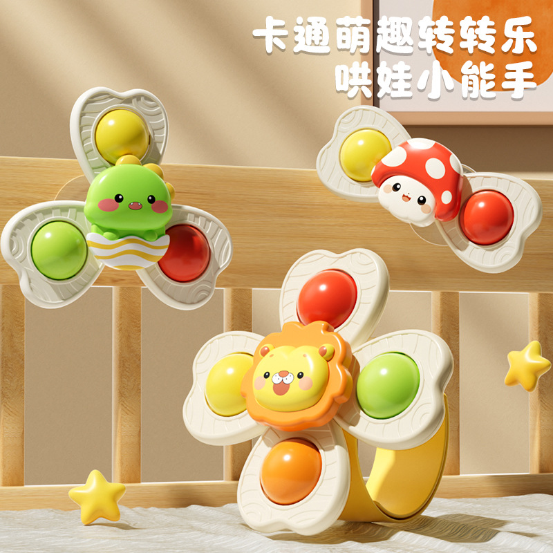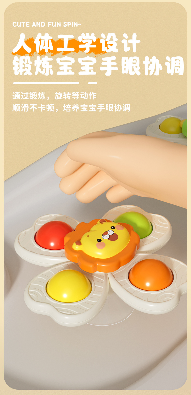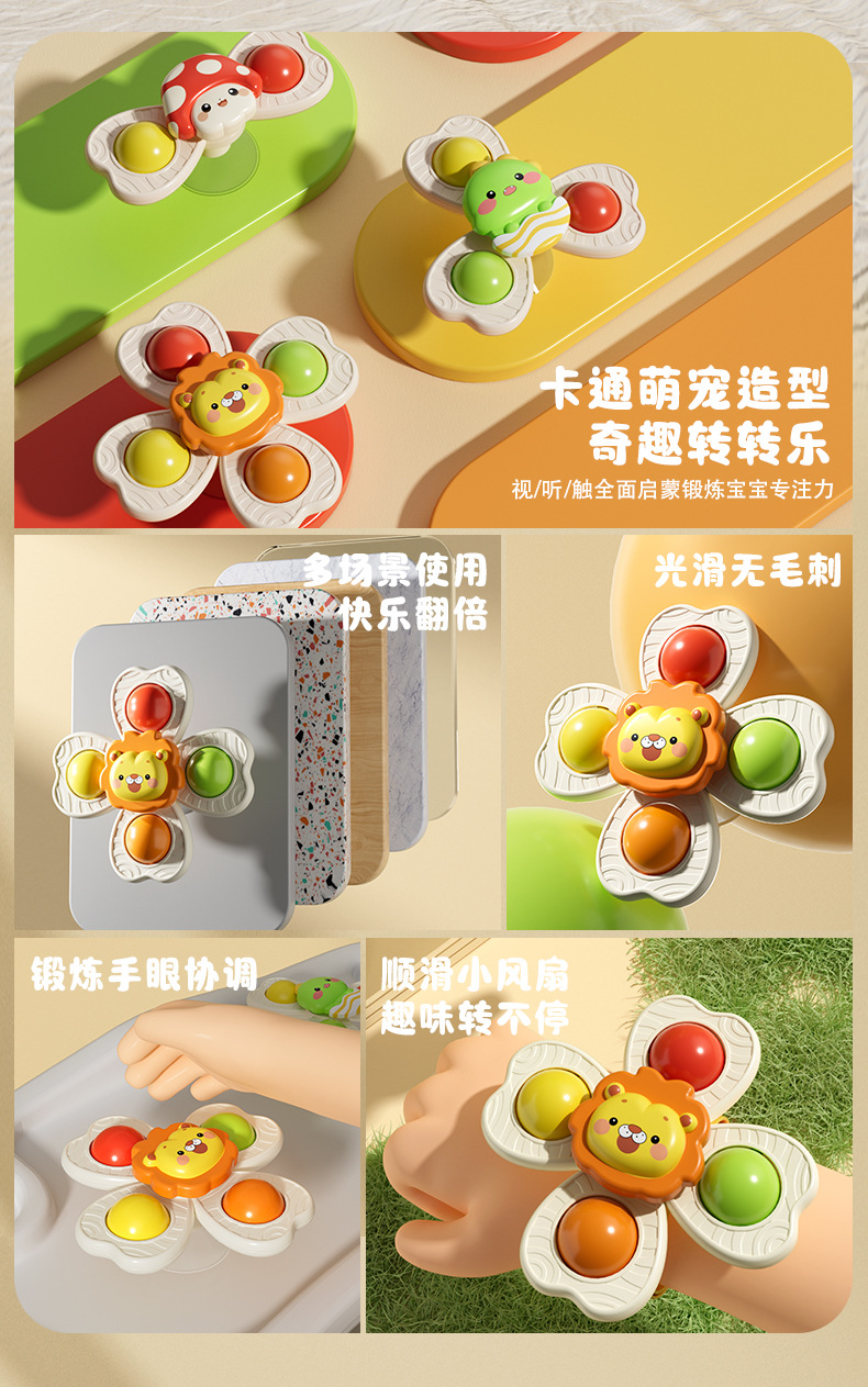 儿童卡通吸盘转转乐动物手环陀螺可啃咬按压趣味餐椅旋转指尖陀螺