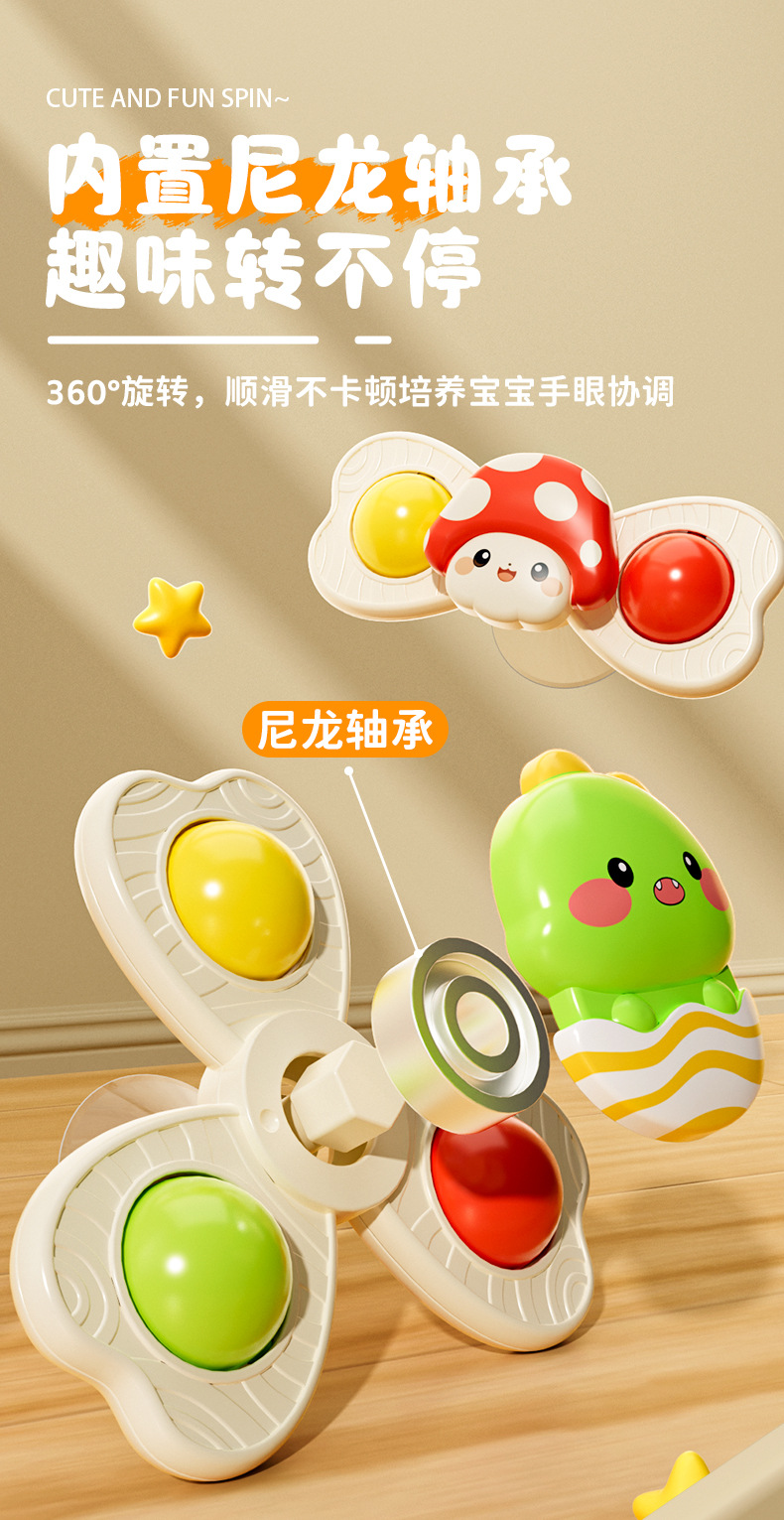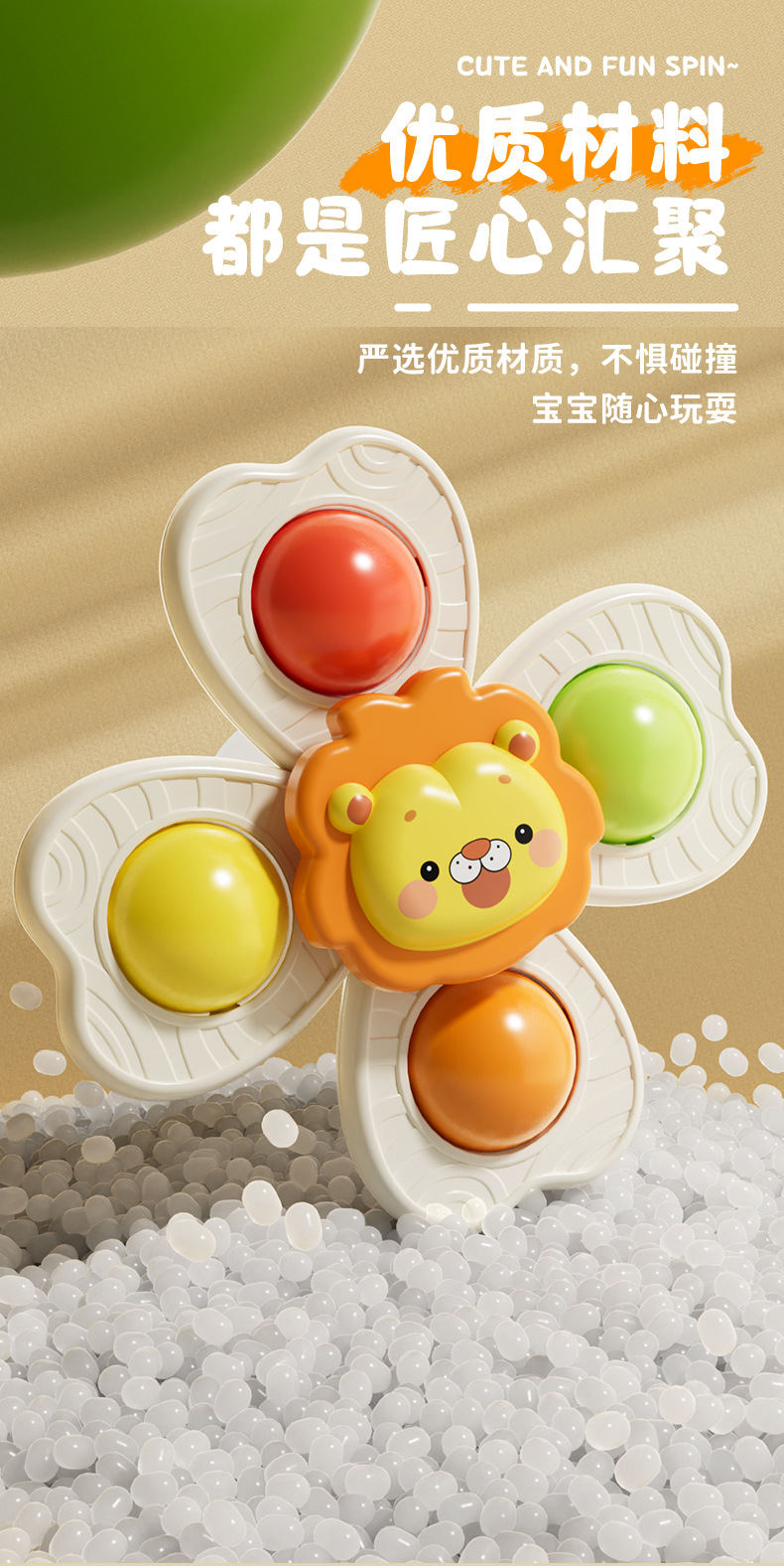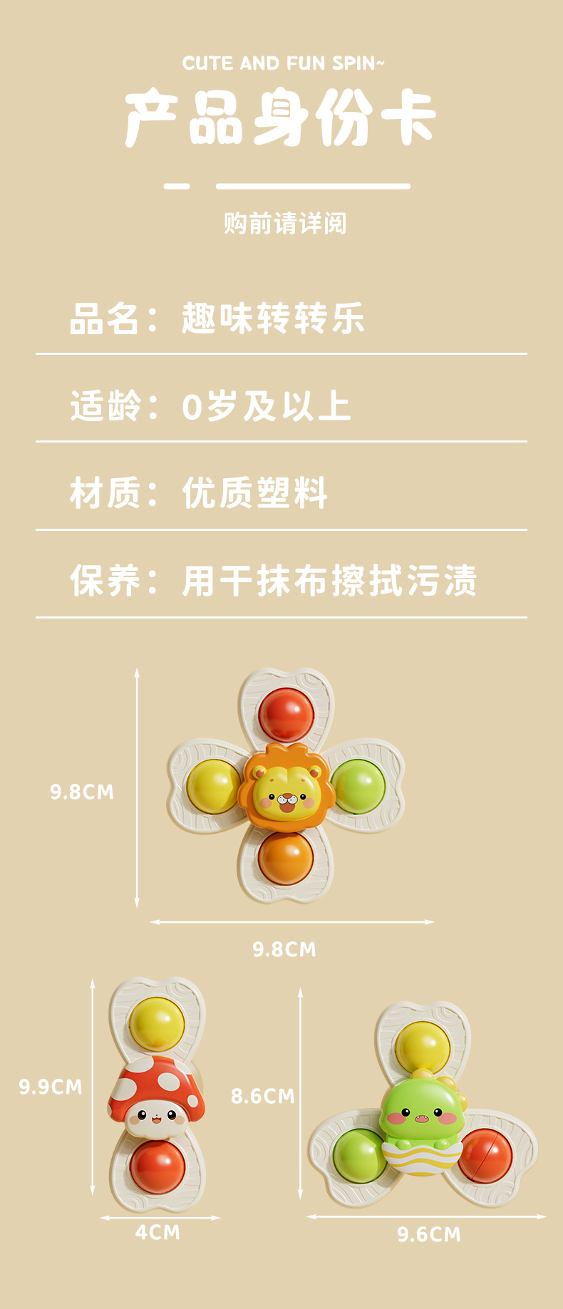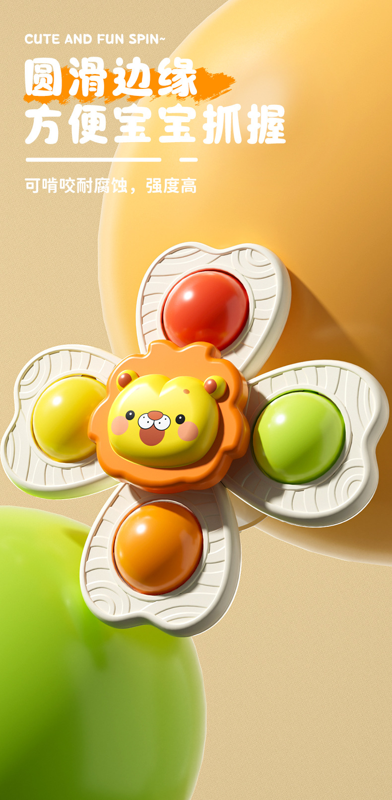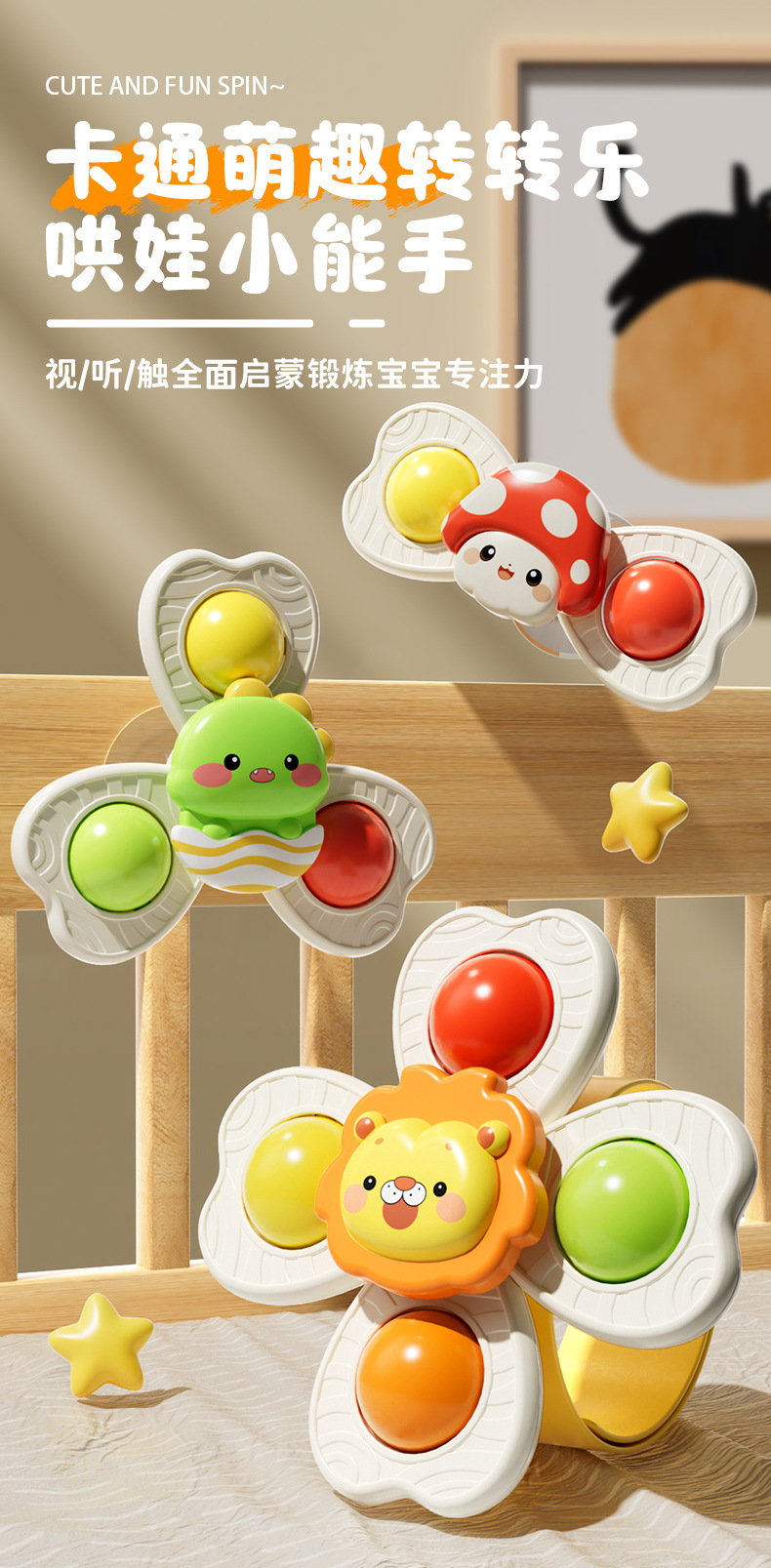 儿童卡通吸盘转转乐动物手环陀螺可啃咬按压趣味餐椅旋转指尖陀螺