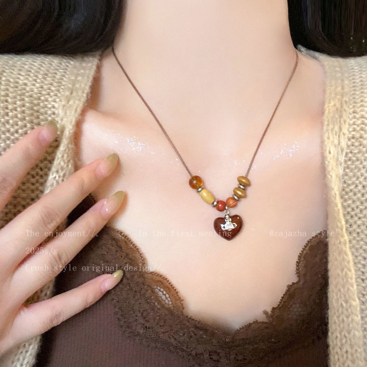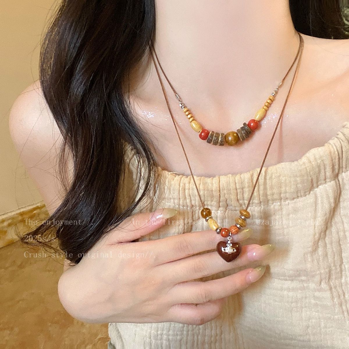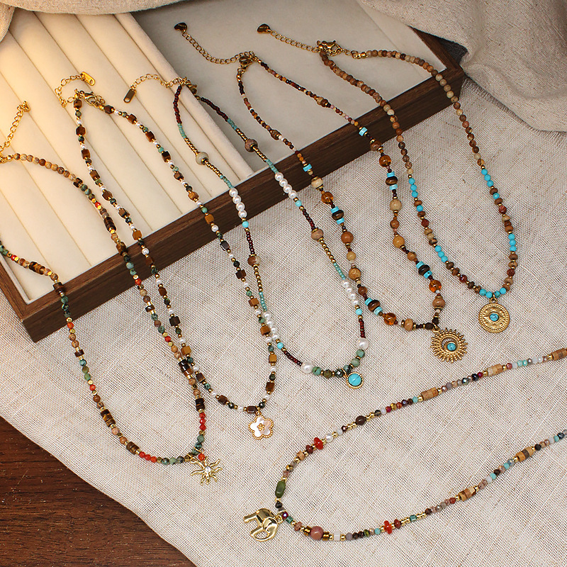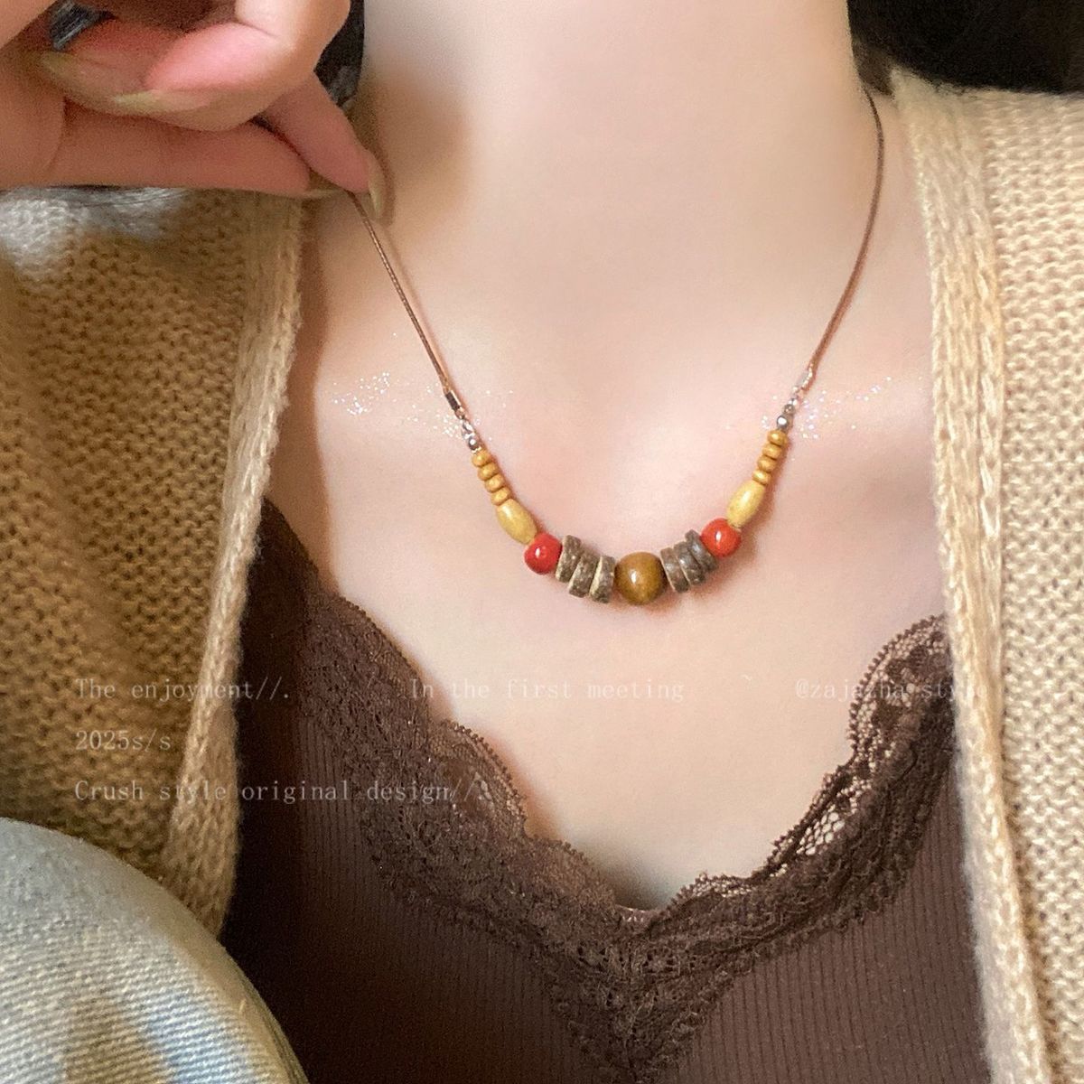 美拉德复古天然石串珠项链2025新款高级感民族风轻吊坠奢小众锁骨