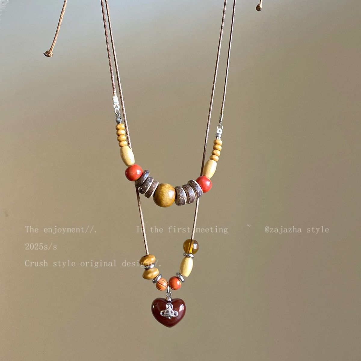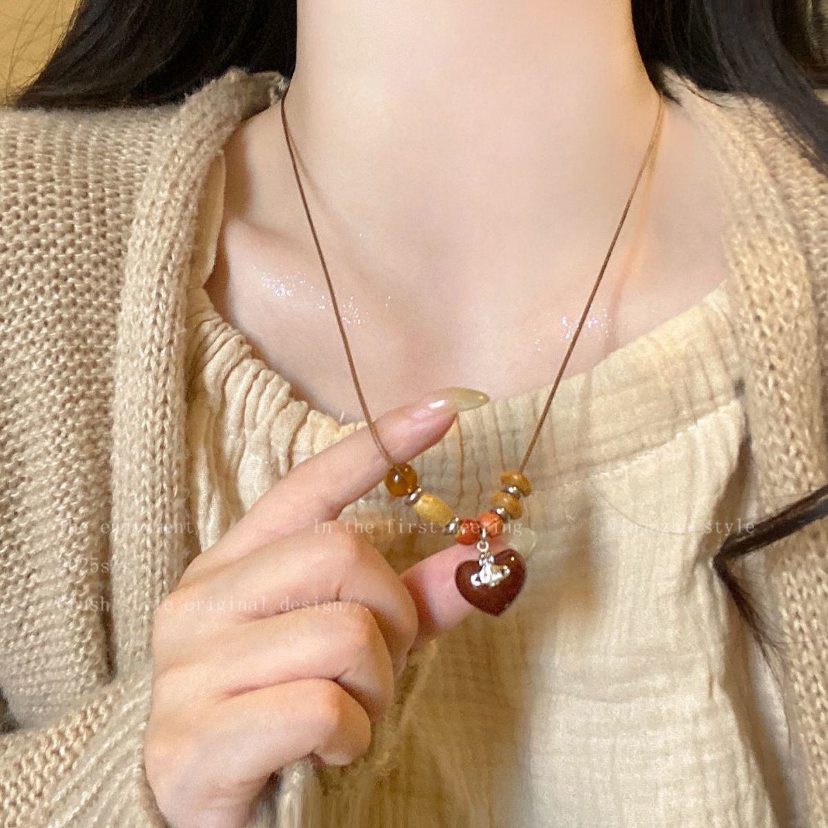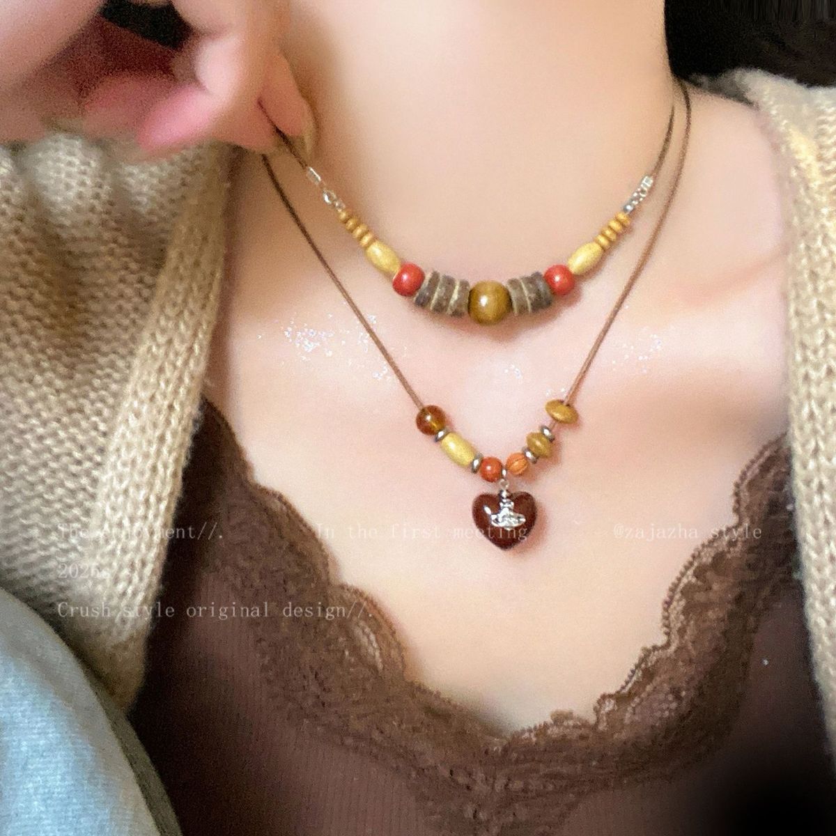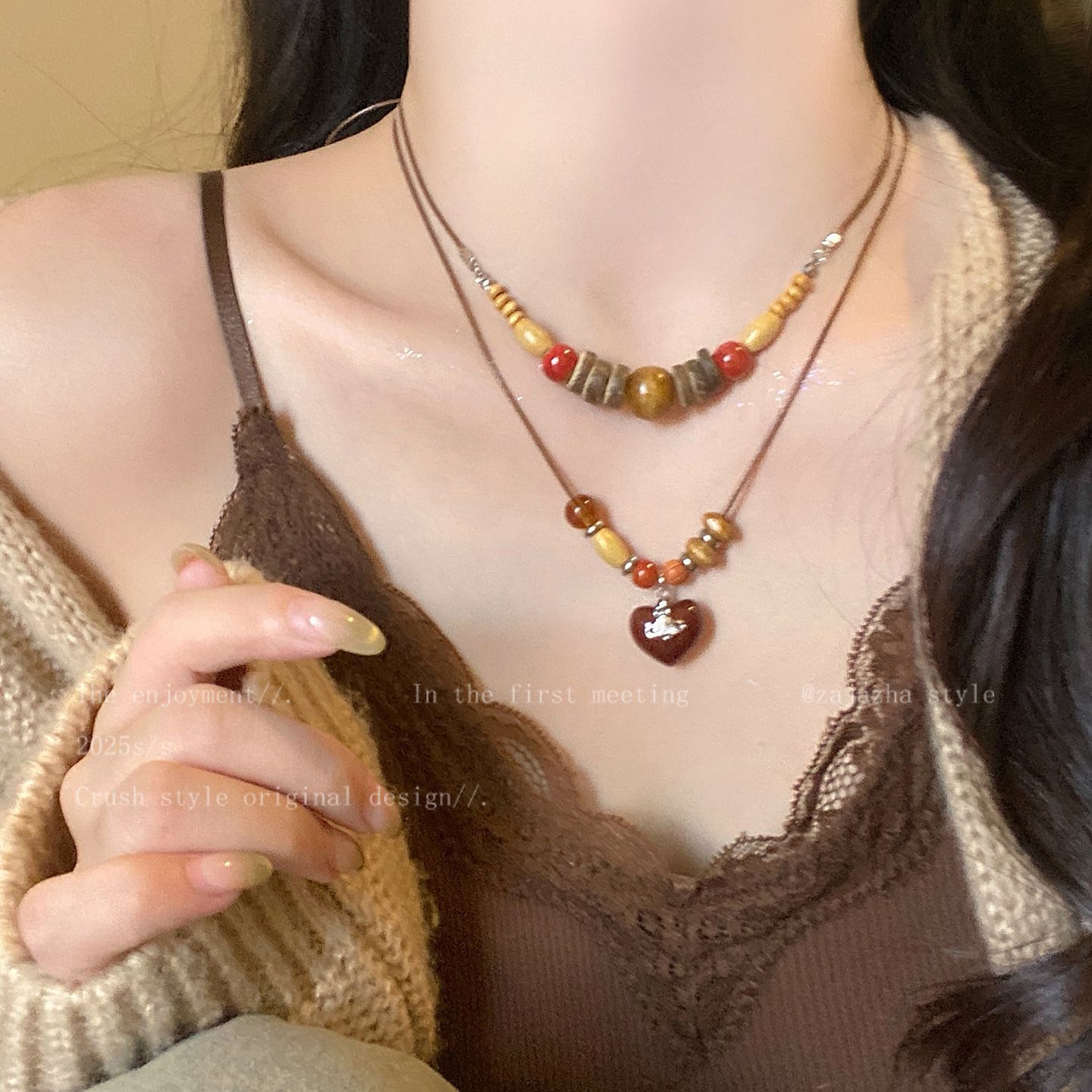 美拉德复古天然石串珠项链2025新款高级感民族风轻吊坠奢小众锁骨
