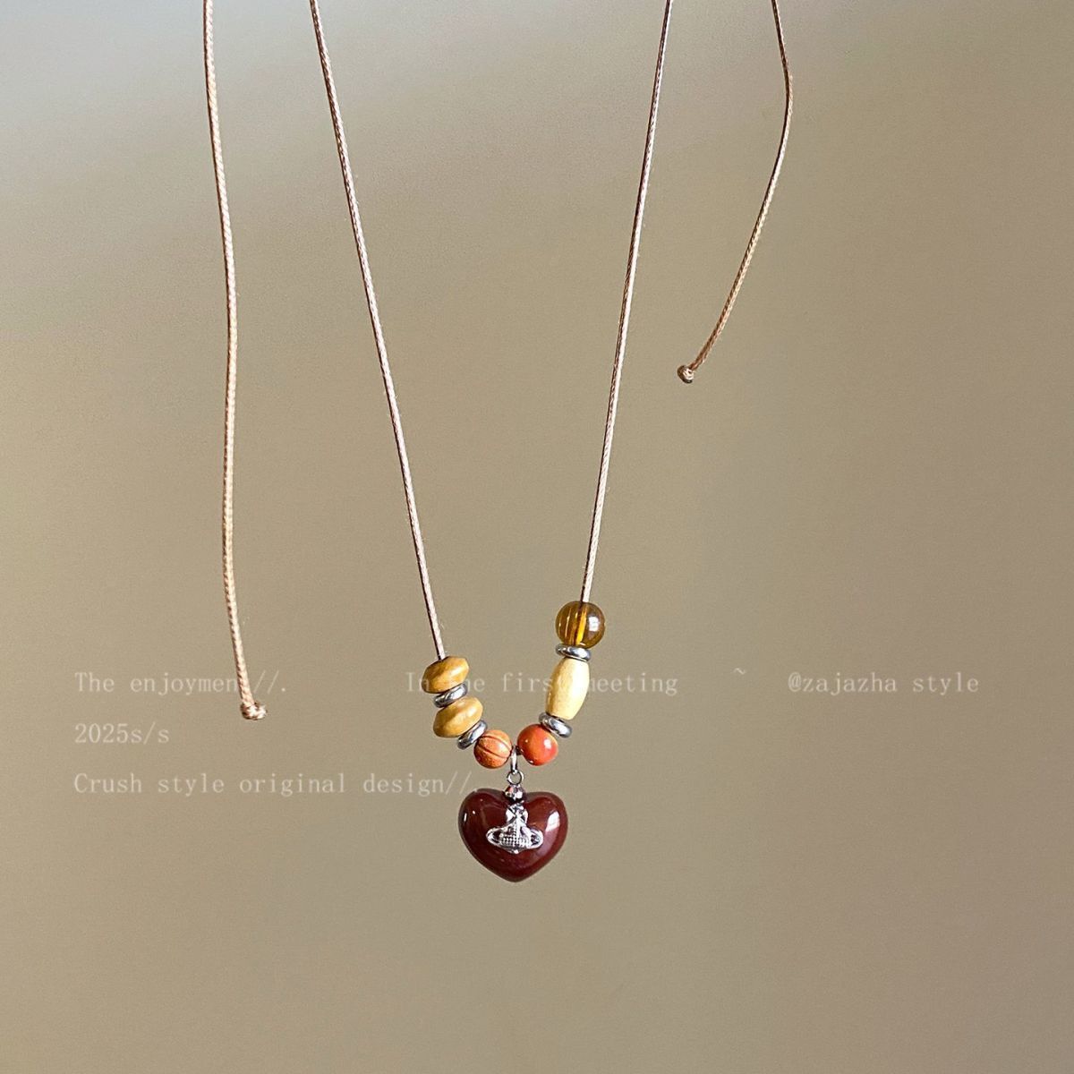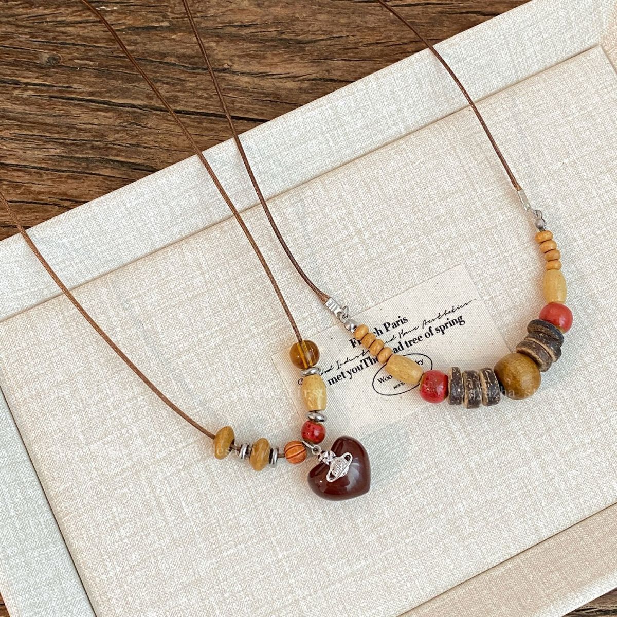 颜色 复古木质土星项链,复古串珠项链