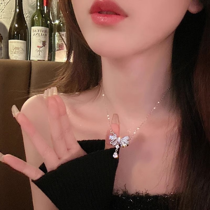 爆闪锆石蝴蝶结吊坠项链轻奢女网红气质锁骨链时尚高级感项链礼物