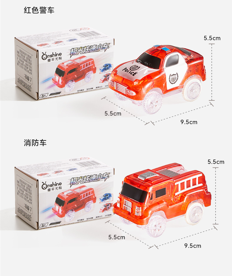童年无限极光炫速小车磁力片轨道小车电动警车消防车儿童玩具礼物