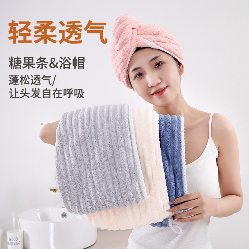 キャンデーの綿毛のバス帽の女性のサンゴの綿毛は厚い吸水の乾いたスカーフを塗って髪を拭きます。