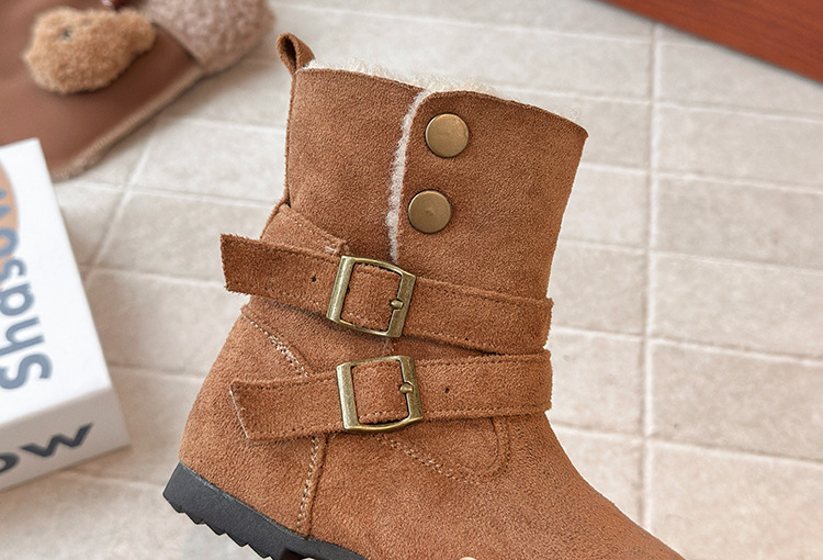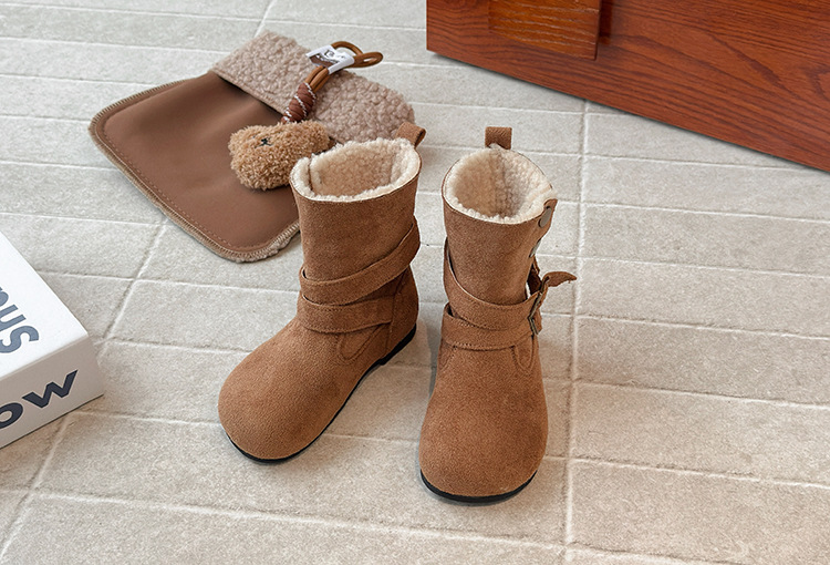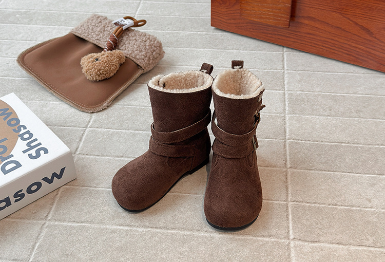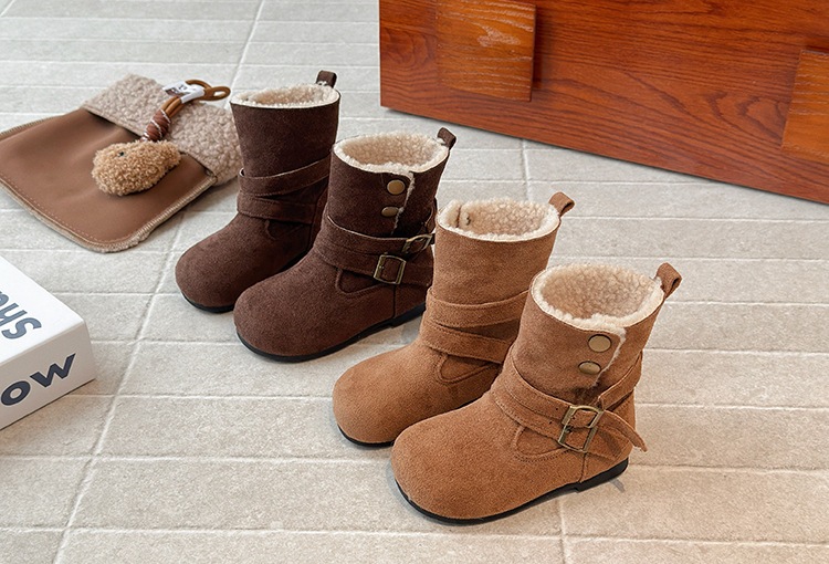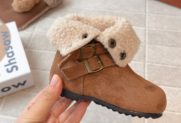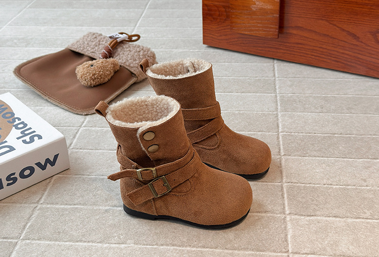 ins法式复古勃肯靴2025秋冬季新款韩版女童加绒短靴男童毛毛棉鞋