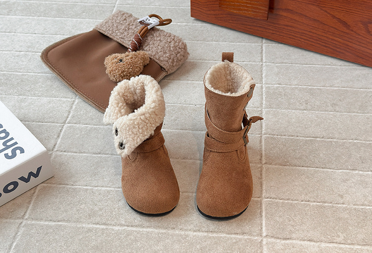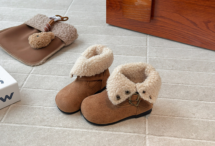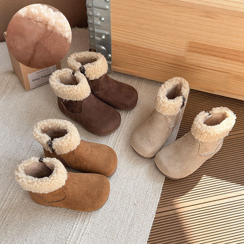 韓国スタイルの女の子用ファーブーツ 2025 冬暖かい子供用スノーブーツニッチかわいいベルベットショートブーツベビーコットンブーツ