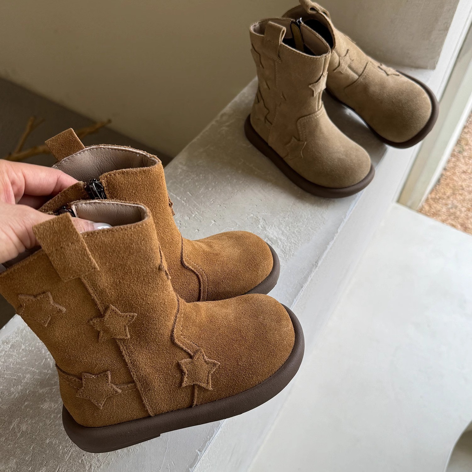 ins法式绒面堆堆靴2025秋冬季新款韩版女童时尚复古一脚蹬中筒靴