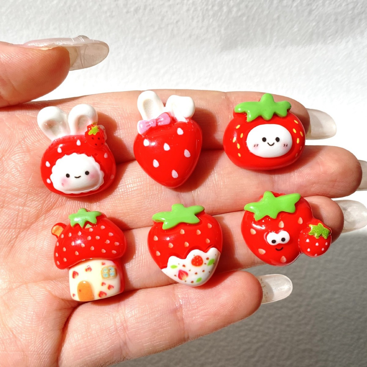 卡通diy饰品奶油胶树脂配件批发手机壳钥匙扣发夹鞋花红草莓兔子